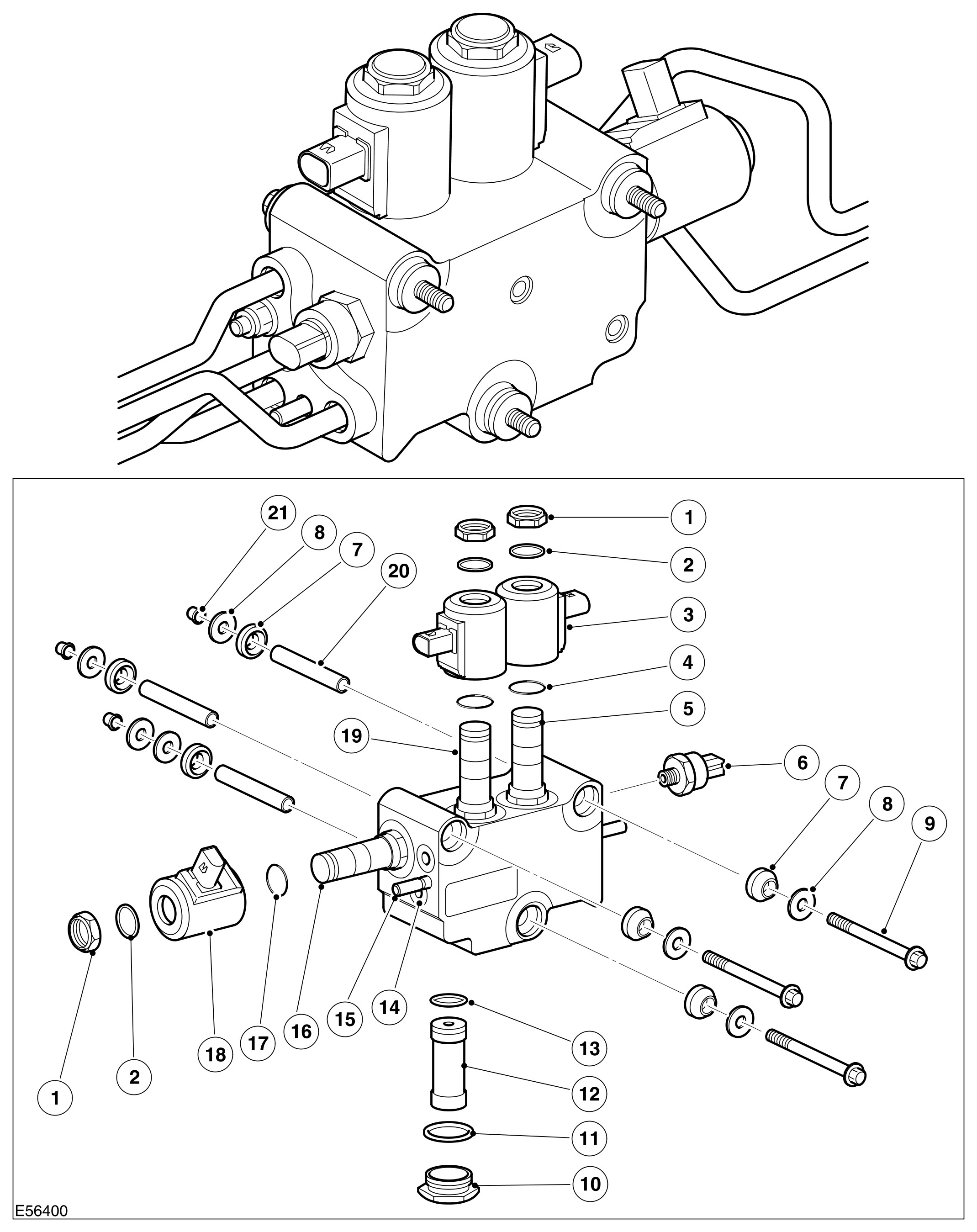 The two Directional Control Valves (DCV's) are fitted to ports in the top face of the valve block. The DCV's are screwed into the valve block and are sealed with O rings. Each DCV has a solenoid for electrical operation of the valve. The solenoid is sealed to the DCV with two O rings and secured with a threaded nut. The nut, coil and O rings are serviceable parts. The DCV's are non-serviceable and failure of a DCV requires replacement of the valve block assembly.