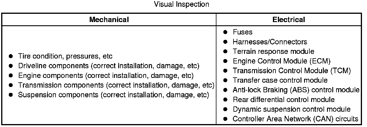 4 If the cause is not visually evident, verify the symptom and refer to the Symptom Chart, alternatively check for Diagnostic Trouble Codes (DTCs) and refer to the DTC Index.