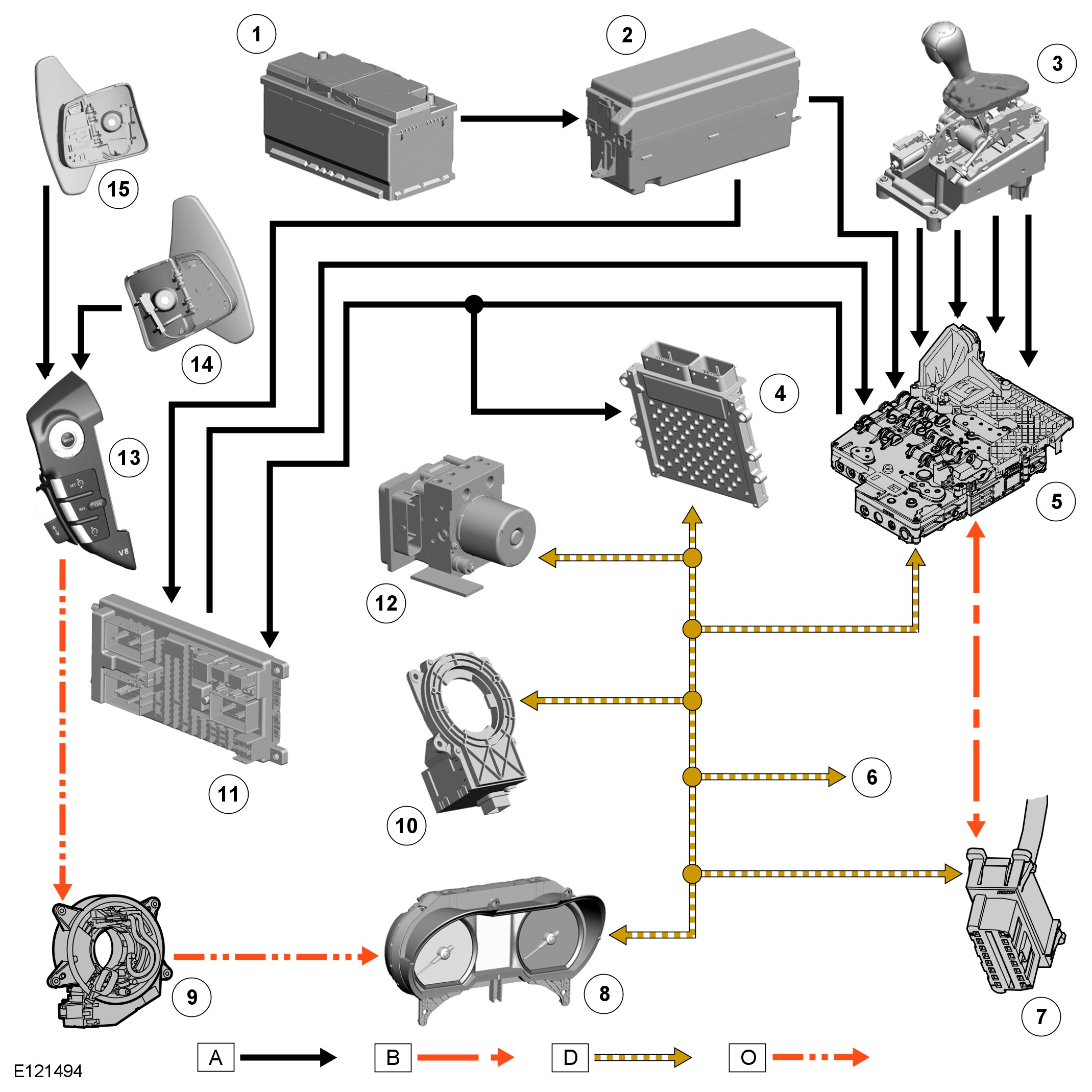 A = Hardwired; B = K bus; D = High speed CAN (controller area network) bus O = LIN (local interconnect network) bus.