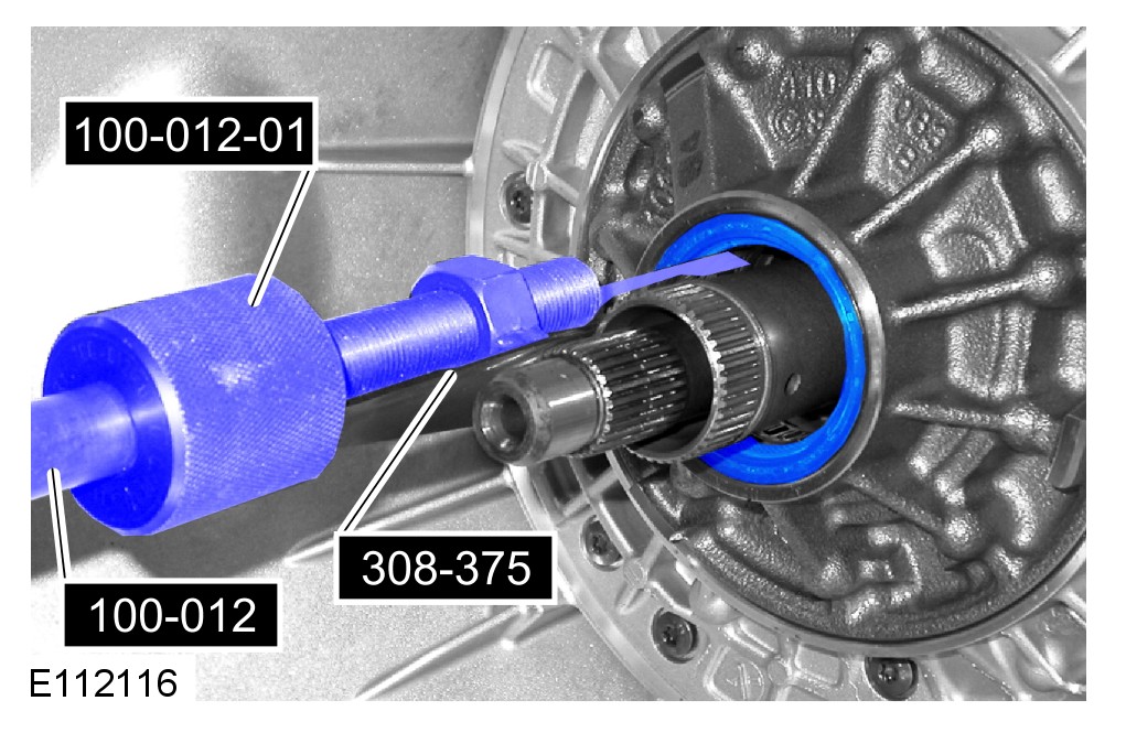 CAUTION: Make sure the torque converter is fully located into the oil pump drive.