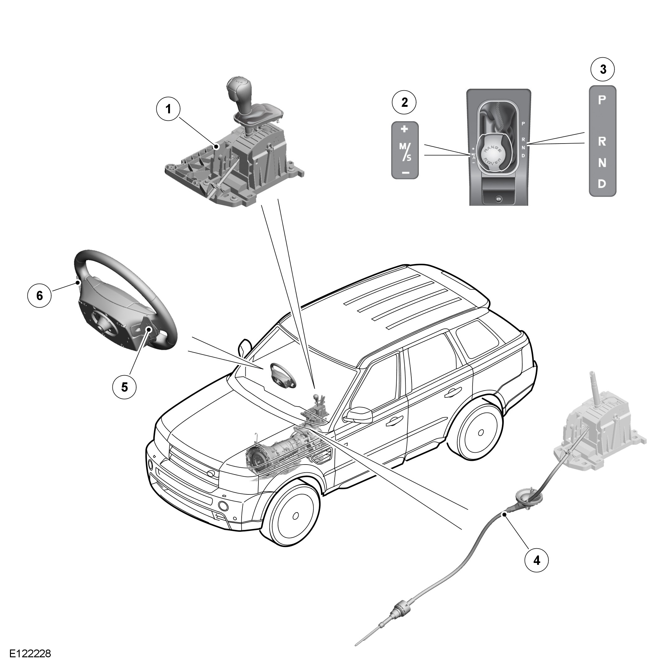 The external controls for the transmission consist of a selector lever assembly, a selector cable and two paddle switches (standard fit on SC (supercharger) vehicles, optional fit on all other vehicles).
