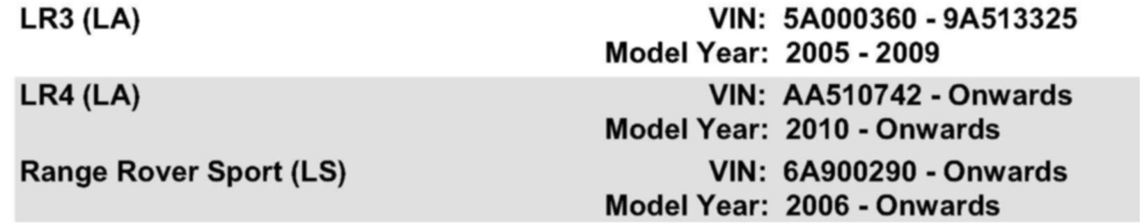 AFFECTED VEHICLE RANGE