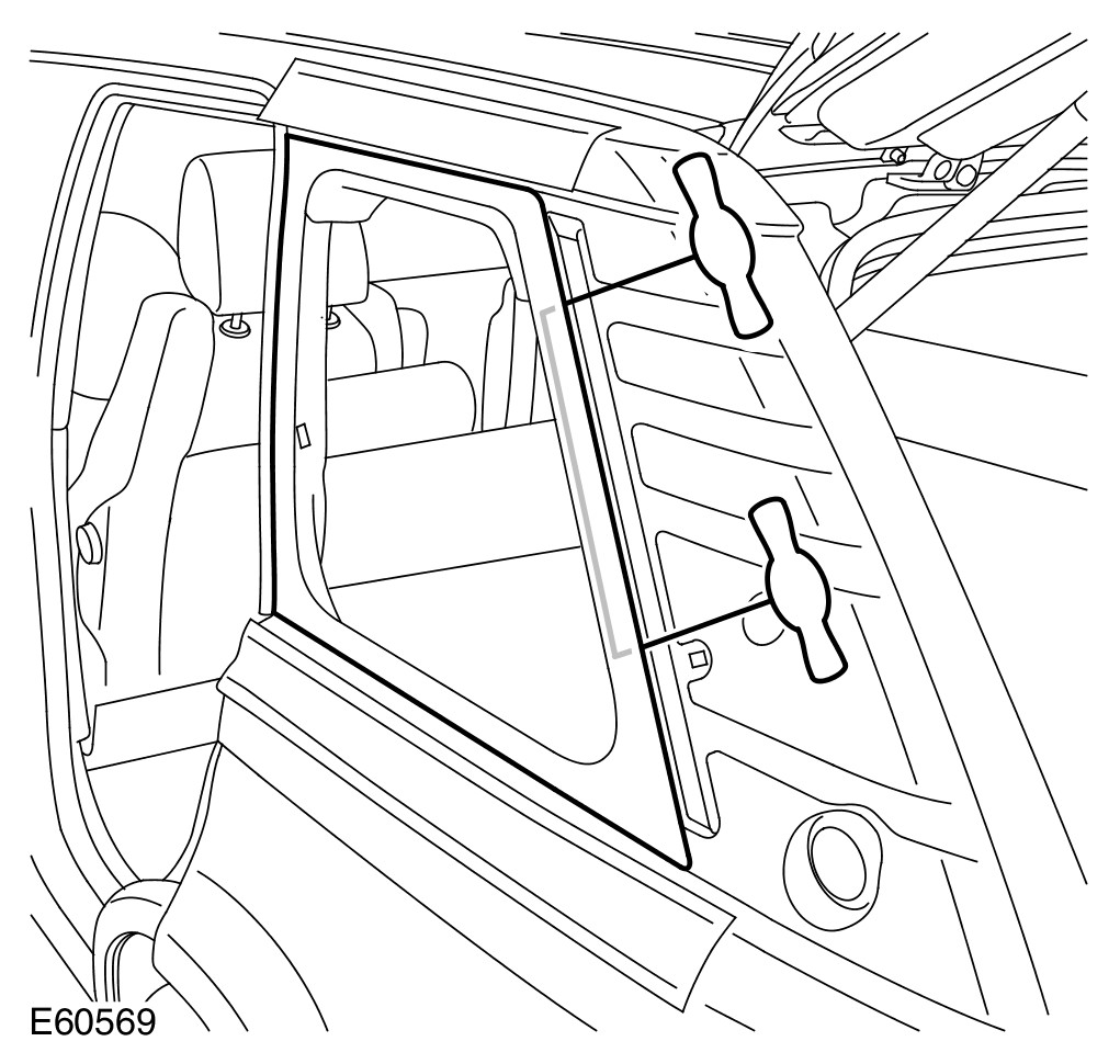 7 Apply a continuous bead of sealant to the rear quarter window glass as shown.