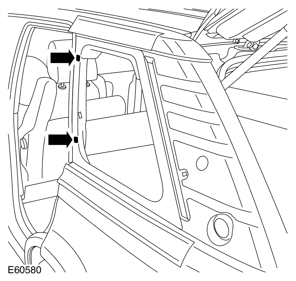 14 Install the C-pillar upper trim panel. For additional information, refer to C-Pillar Upper Trim Panel C-Pillar Upper Trim Panel