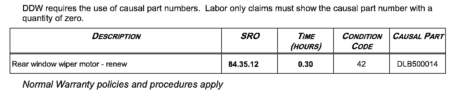 In the event of a customer concern of the above, refer to the Repair Procedure outlined below to replace the rear window wiper motor.