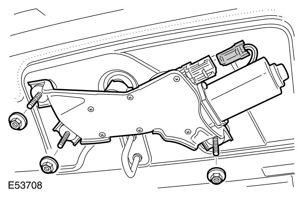 2 Remove the rear window wiper arm. For additional information, refer to Rear Wiper Pivot Arm Rear Wiper Pivot Arm