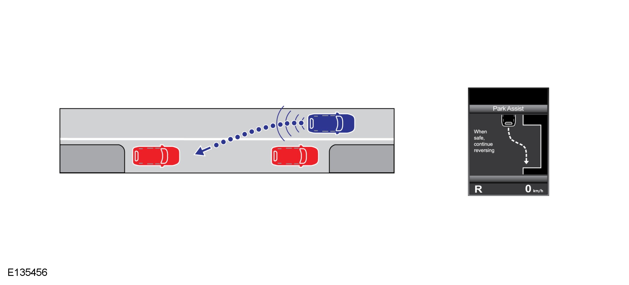 When reverse gear is selected the instrument cluster message center displays the appropriate parking instructions.