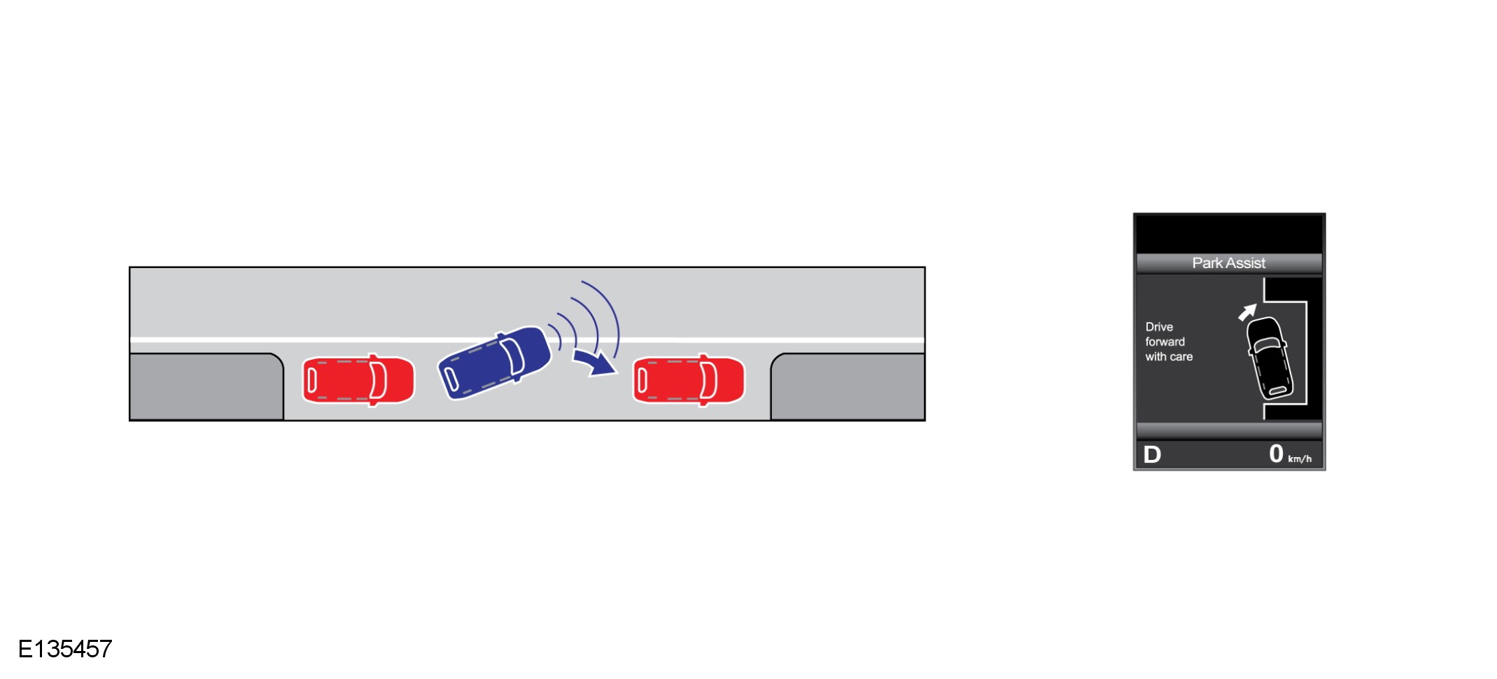 - The driver follows message center instructions, gently applying the accelerator, moving the vehicle forwards along the trajectory calculated by the park assist system