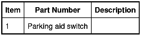 The switch is a non-latching push switch which allows the driver to select the parking aid system on or off. When pressed, the switch momentarily connects a ground to the parking aid module. The LED (light emitting diode) indicates when the parking aid system is active. The LED (light emitting diode) is controlled by the parking aid module.