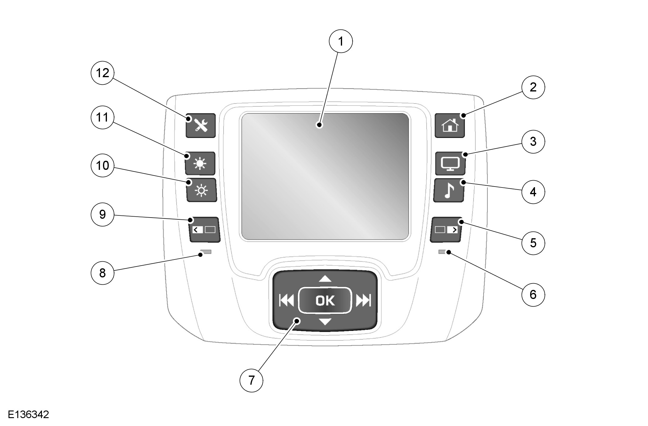 An infra-red receiver sensor is located centrally in the bottom portion of the upper screen surround. The receiver sensor receives infra-red transmissions from the RSE remote control and passes them to the RSE module on a private CAN (controller area network) bus system which is only connected between the RSE module and the RSE screens. The RSE module can then transmit any relevant messages onto the MOST ring. All screen settings can be changed using the RSE remote control.