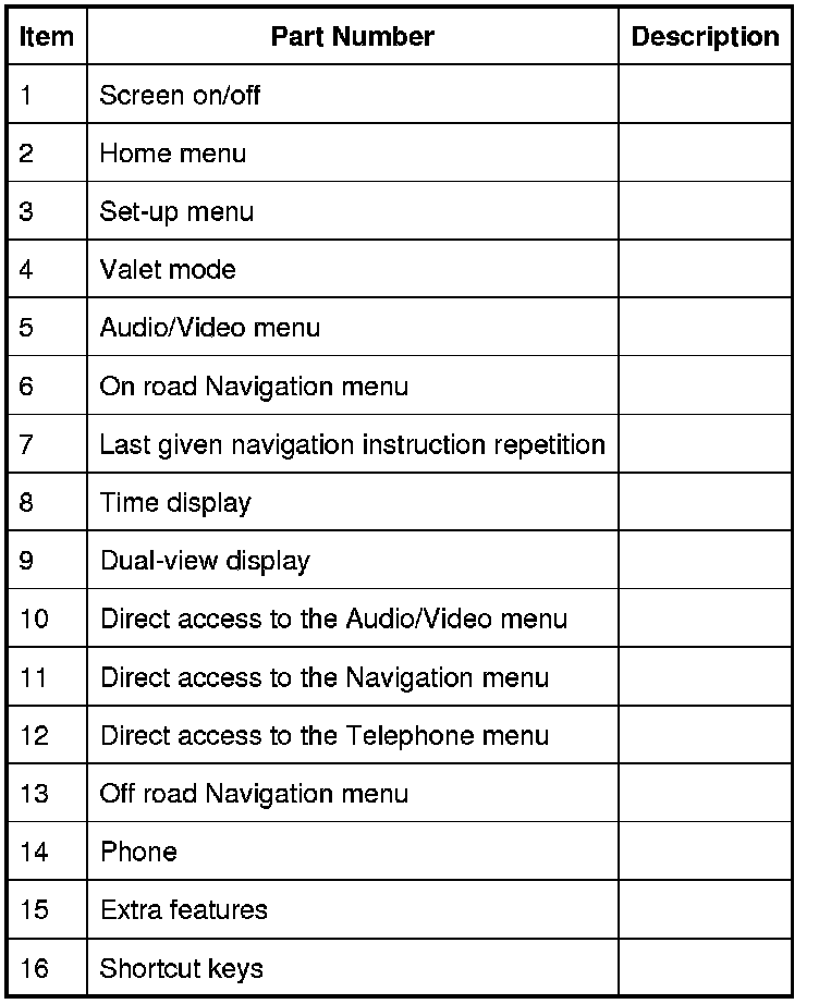 The remote control transmits an infra-red digital signal in response to operation of a button or soft key. The infra-red signal is received by a receiver sensor located on each RSE screen. The remote control also allows selection of an auxiliary input from the AVIO panel (video or games console) or selection of audio (radio or CD (compact disc)).