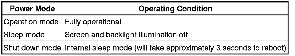 The charging is powered via 12V supply from the RSE module directly to the RSE docking station. If the battery charge becomes low, a message is displayed on the remote control advising to dock and recharge the remote control. The remote control has three power modes as follows: