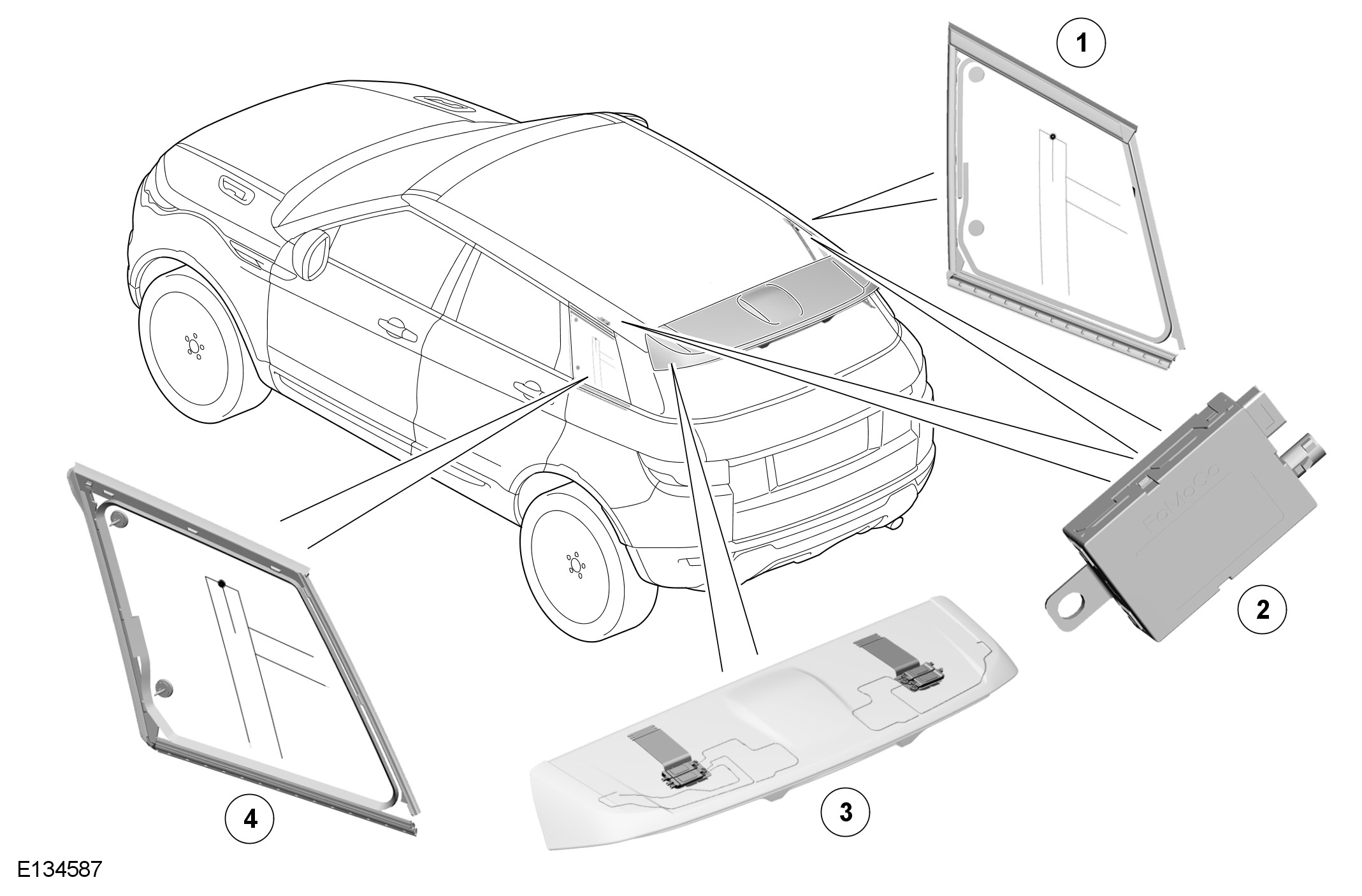 On vehicles with remote park heating, the RH (right-hand) rear antenna is fitted with a combined remote park heating/TV antenna amplifier.