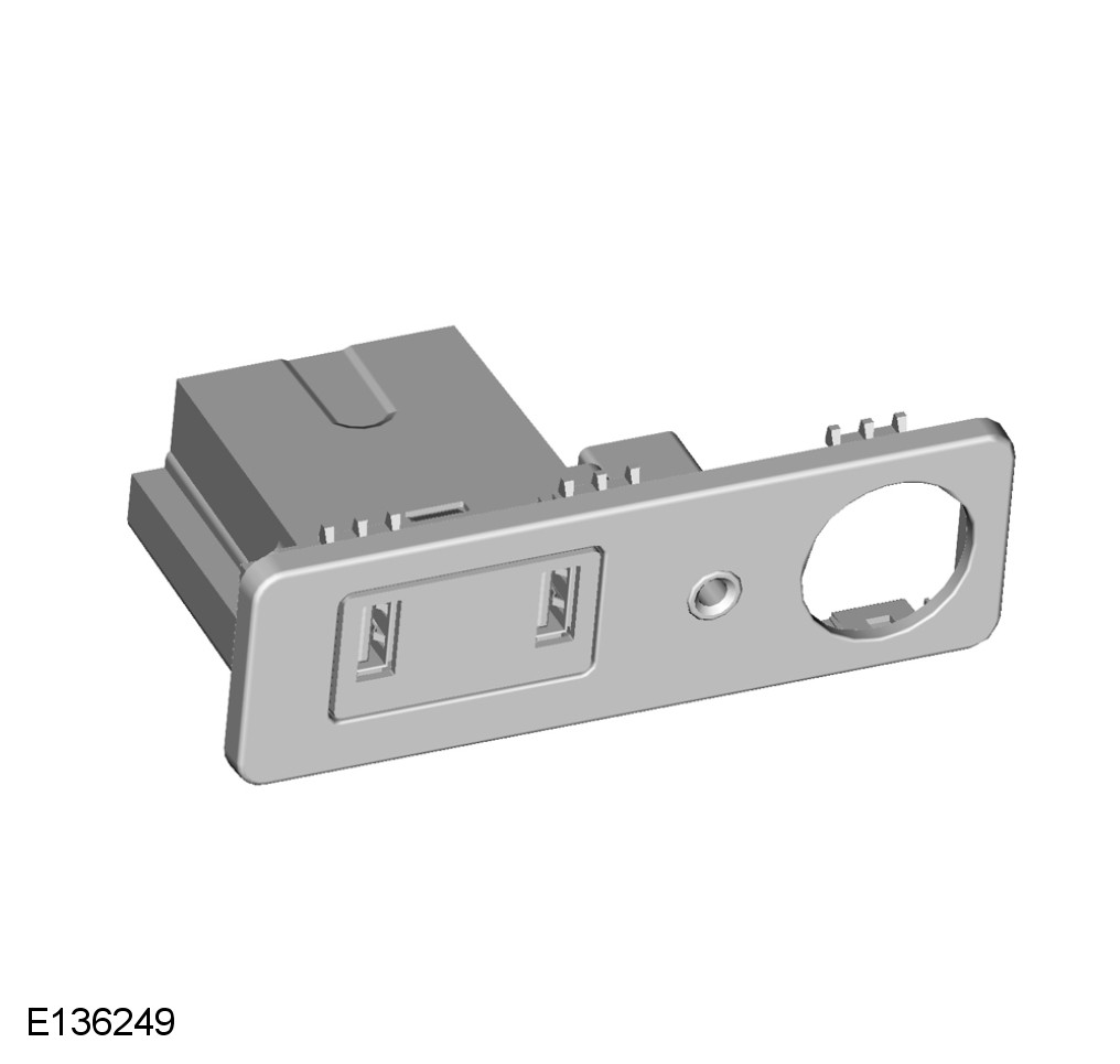 The double USB (universal serial bus) socket allows for the attachment of auxiliary inputs, such as iPod/iPhone, an MP3 player or a USB (universal serial bus) memory stick. This socket is connected directly to the IAM and allows audio to be selectable on the front screen and to be played through the vehicle speakers. It will also allow standard definition Div X video files to be played from a USB (universal serial bus) memory stick.