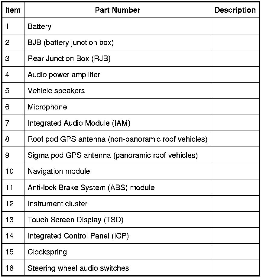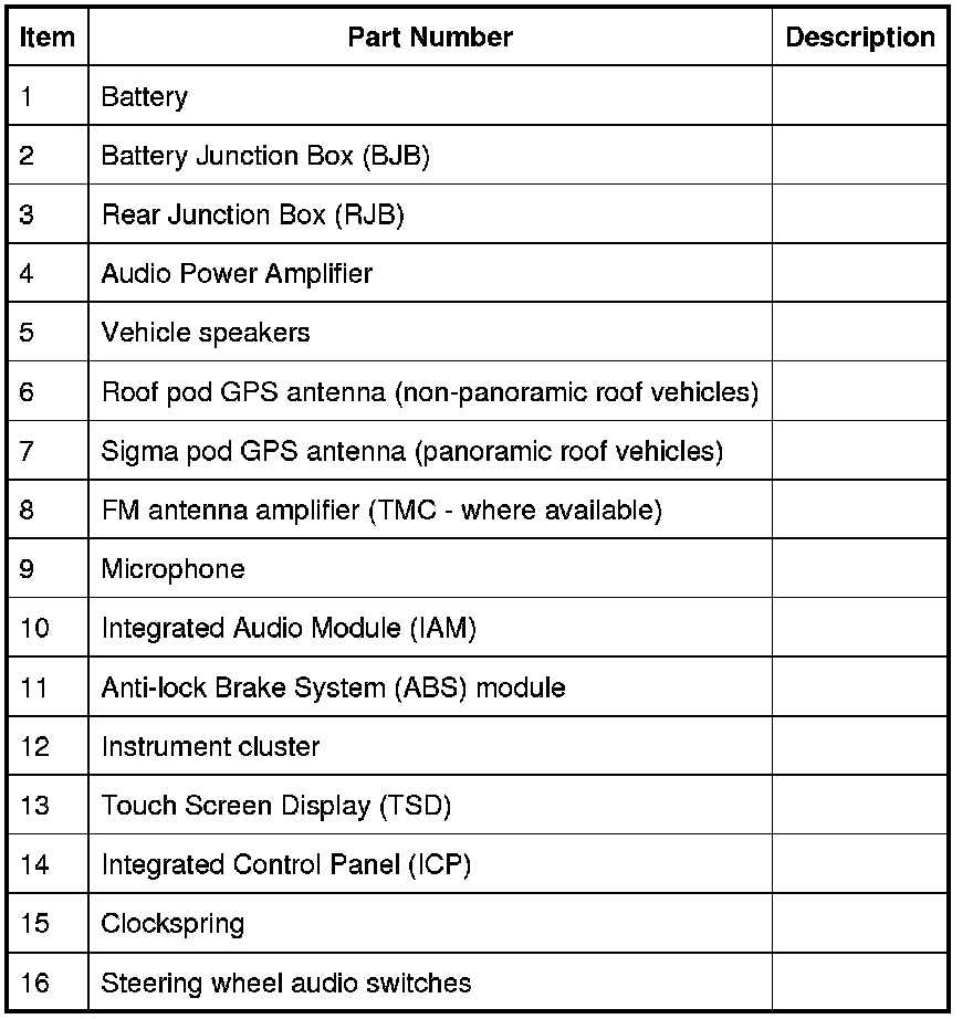 On ROW vehicles, if voice guidance is operational, the voice signals are passed from the IAM to the audio power amplifier on the MOST ring for output on the speaker system.