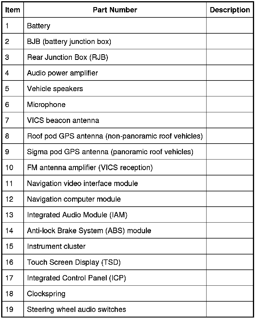 On Japan vehicles, if voice guidance is operational, the voice signal information is relayed from the navigation computer on the MOST to the audio power amplifier for output on the speaker system.
