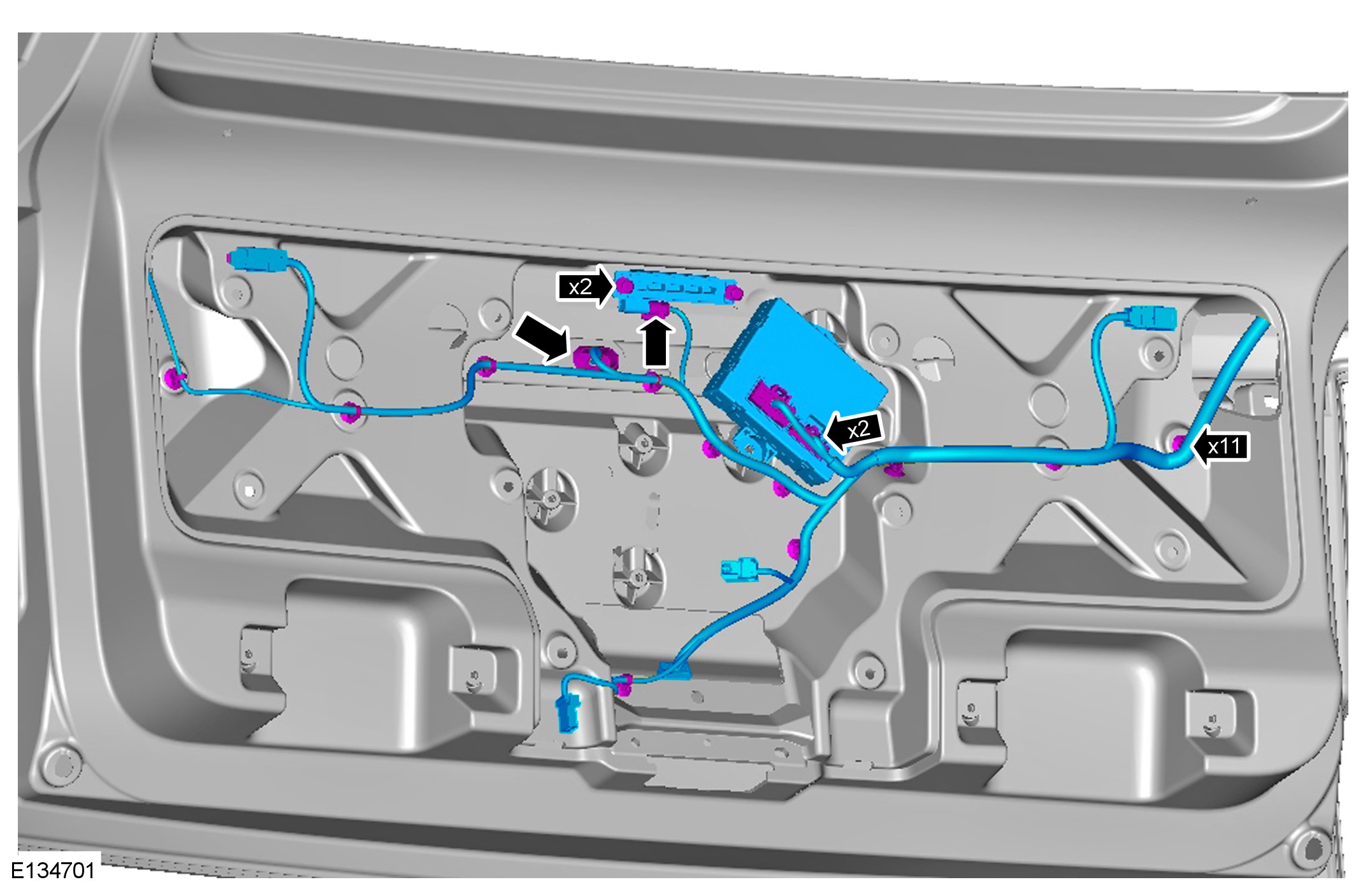 CAUTION: Make sure the tailgate harnesses are withdrawn through the body harness apertures when removing the tailgate.