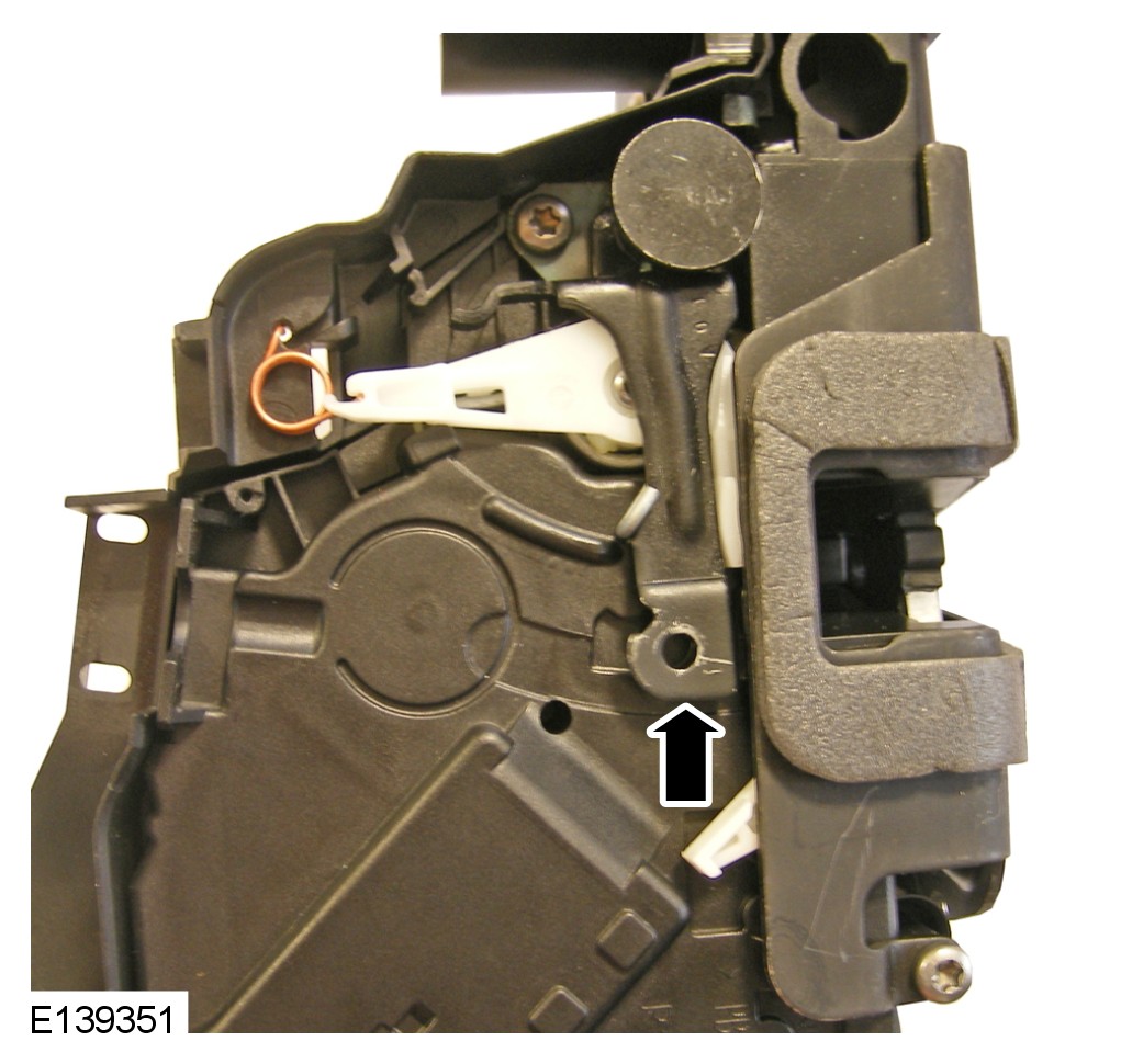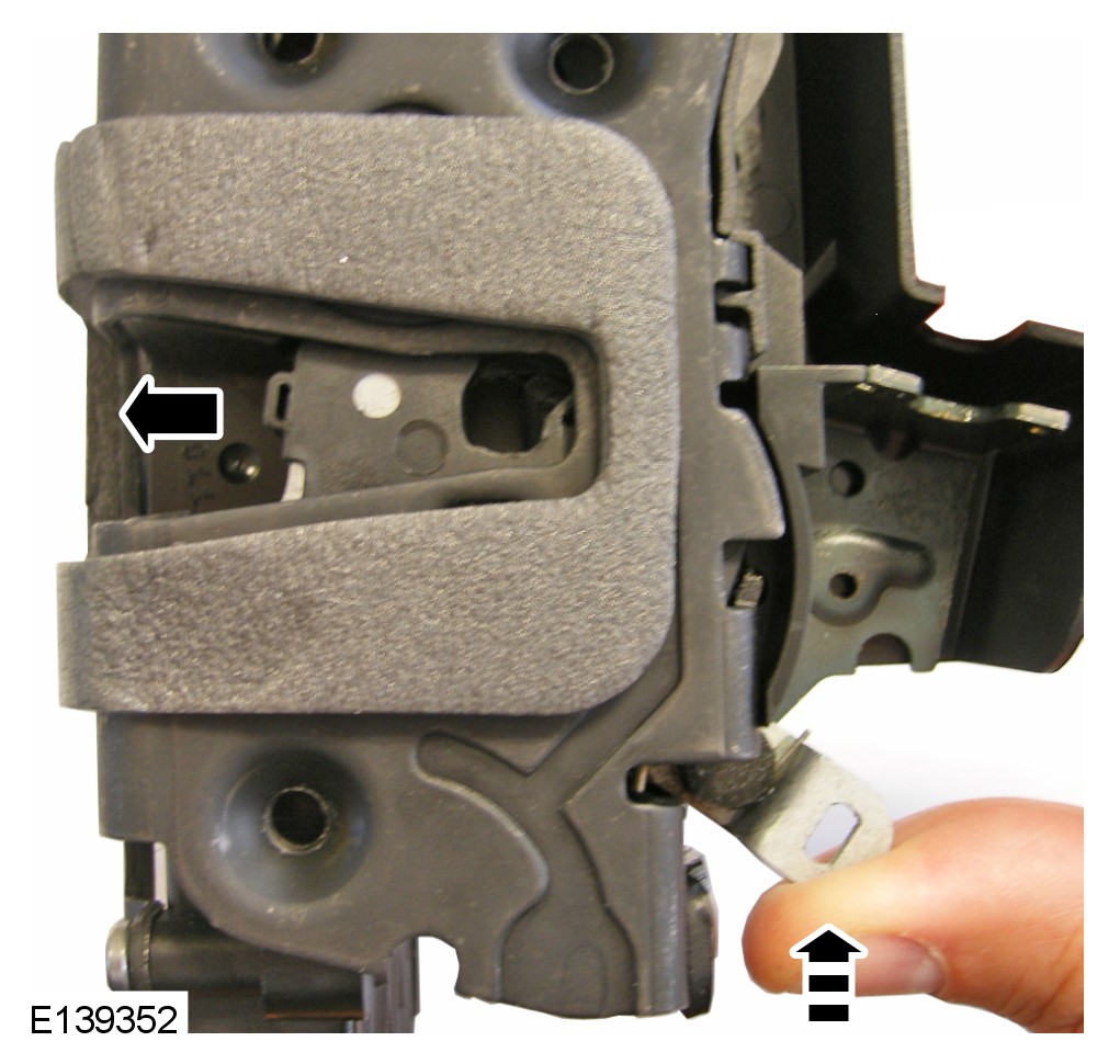 Whilst the latch is still in its unlocked state, push the latch interior release lever against its return spring, whilst simultaneously applying a light pressure to release the latch claw using a small screw driver or similar