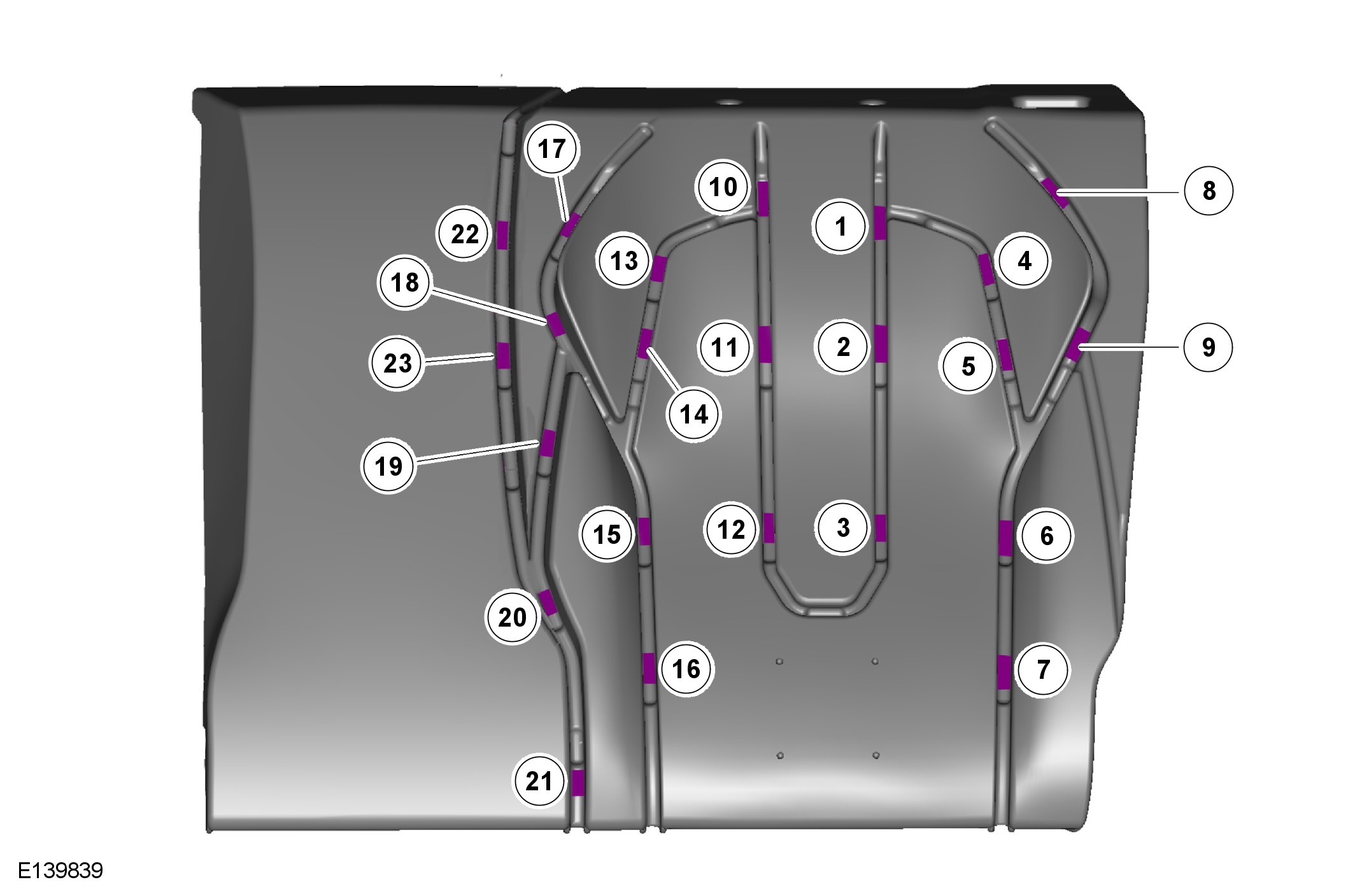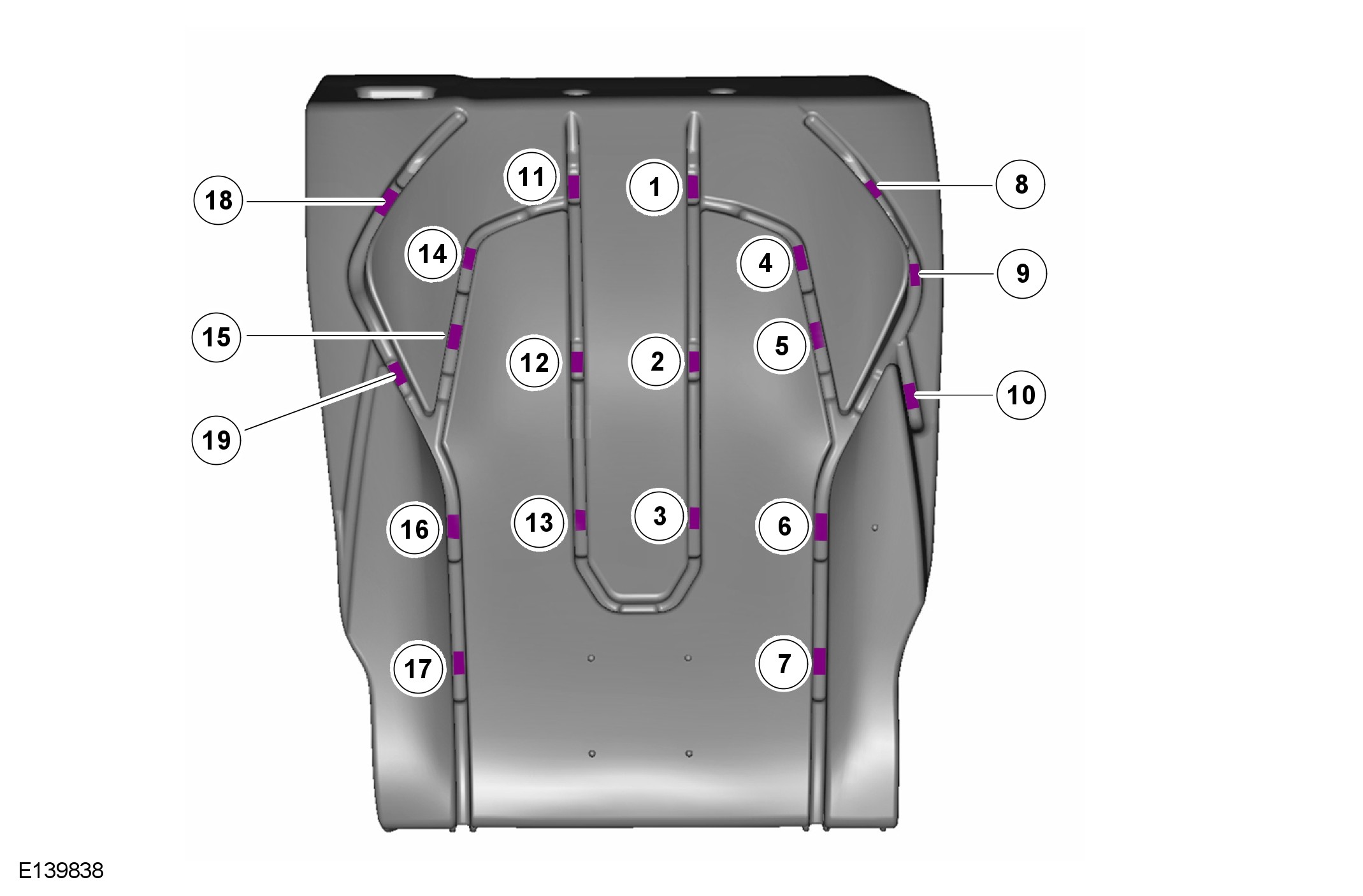 10 Install the service pad to the RH rear seat backrest inner pivot bushing.