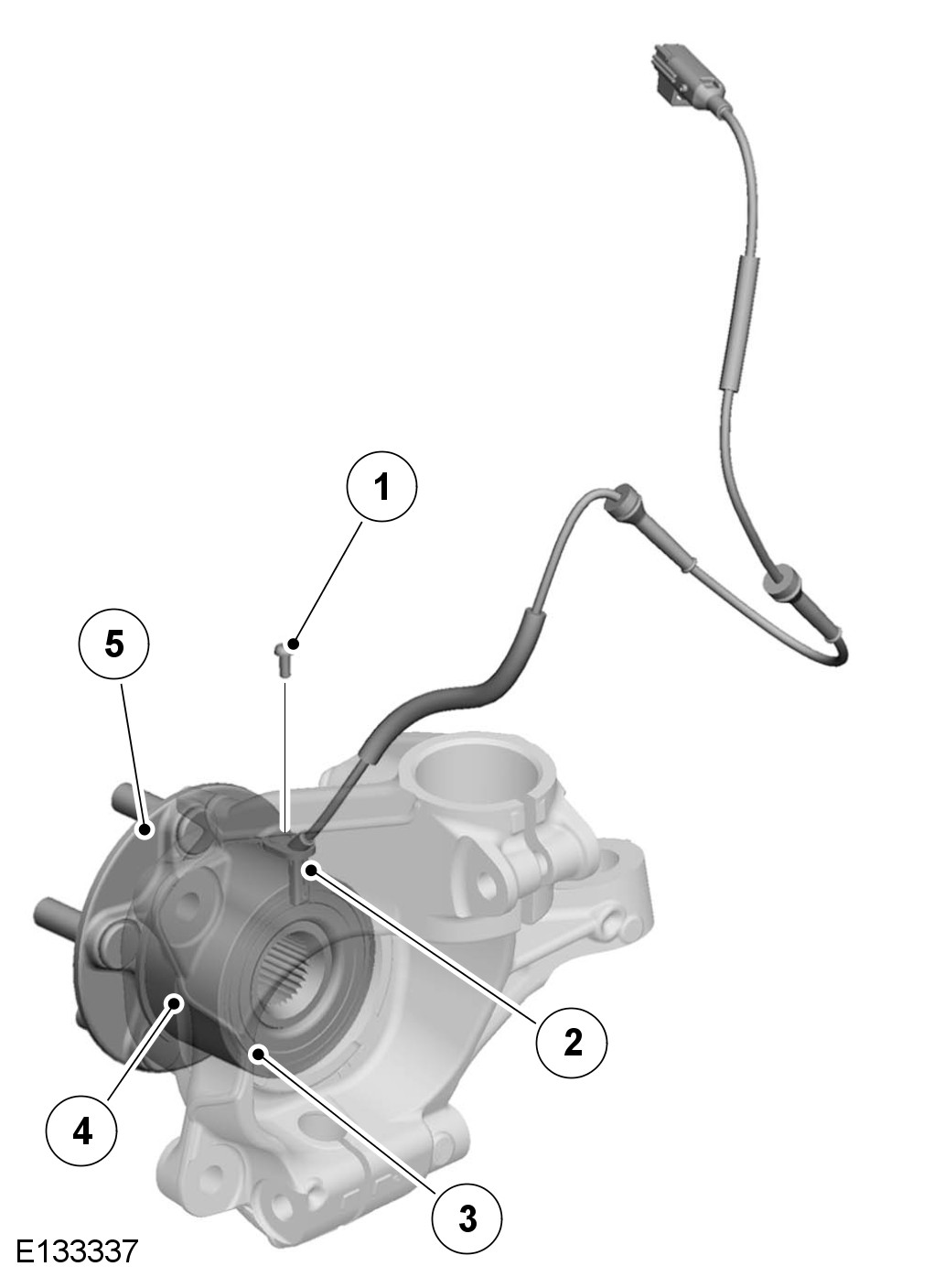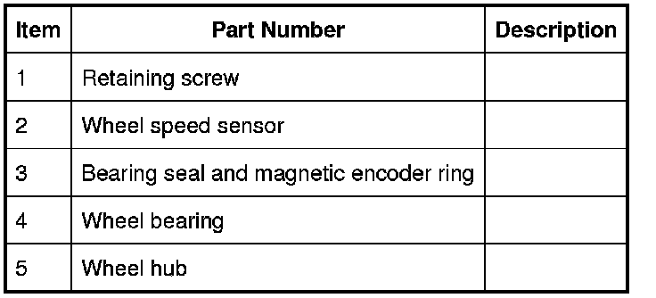 An active wheel speed sensor is installed in each wheel knuckle, and provides the ABS (anti-lock brake system) module with a rotational speed signal from each road wheel. The head of each wheel speed sensor is positioned close to a magnetic encoder incorporated into the seal of the wheel bearing. Each front axle bearing encoder contains 46 north and south pole pairs; each rear axle bearing encoder contains 48 pole pairs. A fly lead connects each sensor to the vehicle harness.