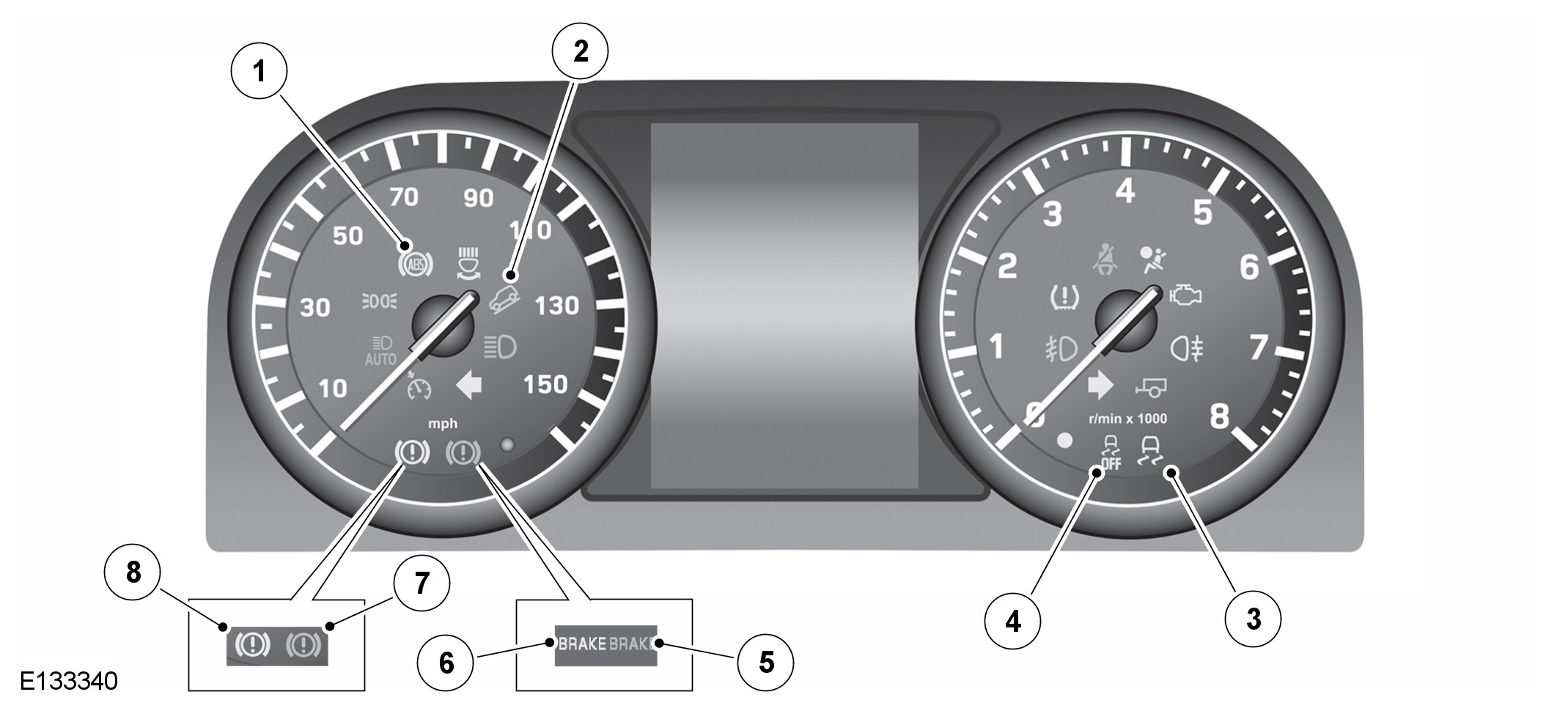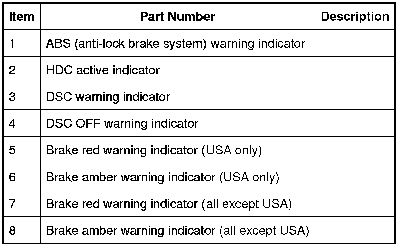 The instrument cluster contains various warning indicators for the anti-lock control - traction control functions. The warning indicators provide a visual indication of either a system fault or system operating status.
