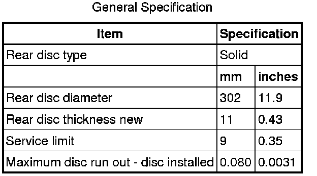 Rear Disc Brake Specifications