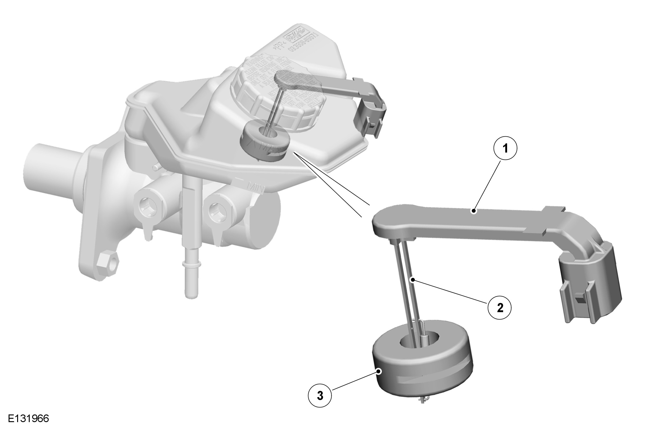 The reservoir incorporates a brake fluid level switch that is hardwired to the CJB (central junction box). When the reservoir fluid falls to a predetermined low level, the switch contacts close and provide a signal feed back to the CJB (central junction box). The CJB (central junction box) then sends a message on the high speed CAN (controller area network) bus to the instrument cluster, which illuminates the brake fluid warning indicator lamp. For additional information, refer to Instrument Cluster Locations