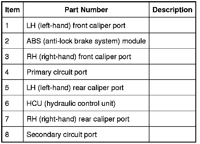 The ABS (anti-lock brake system) module and HCU (hydraulic control unit) form a single component and must not be separated. The ABS (anti-lock brake system) module and HCU (hydraulic control unit) assembly is supplied in a pre-filled state. After installation, the hydraulic brake system only requires a conventional bleed of the system; there is no requirement to pressure bleed the system.