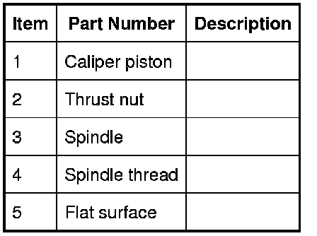Two flat surfaces on the inside of the caliper piston prevent the thrust nut from turning with the spindle. Scallops around the circumference of the thrust nut allow the free flow of hydraulic fluid around the nut during mechanical operation by the parking brake system and hydraulic operation by the brake pedal or ABS (anti-lock brake system) module.