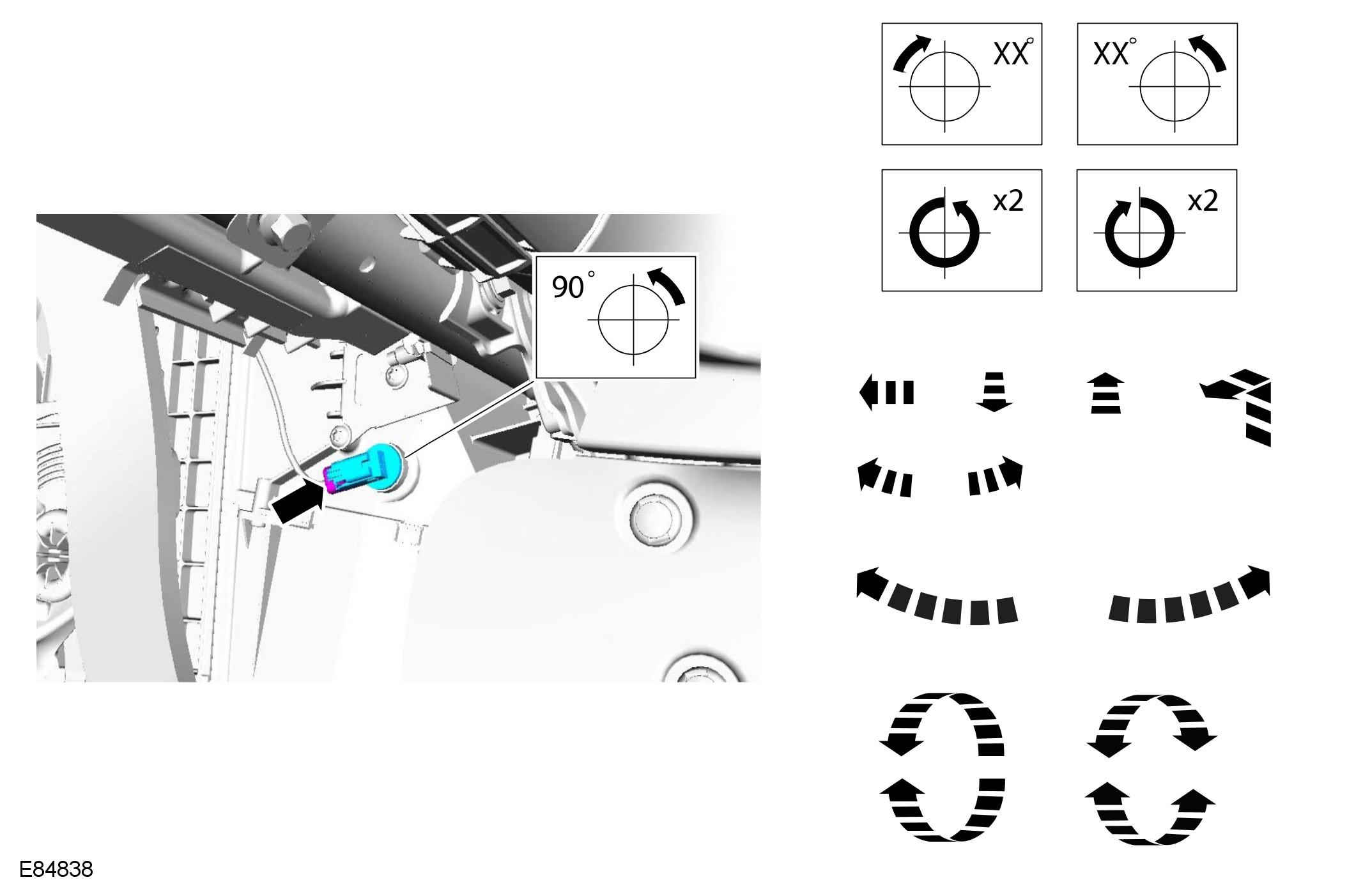 Movement arrows are used to show three dimensional or rotational movements. These movements can include specific values inside the symbol if required.