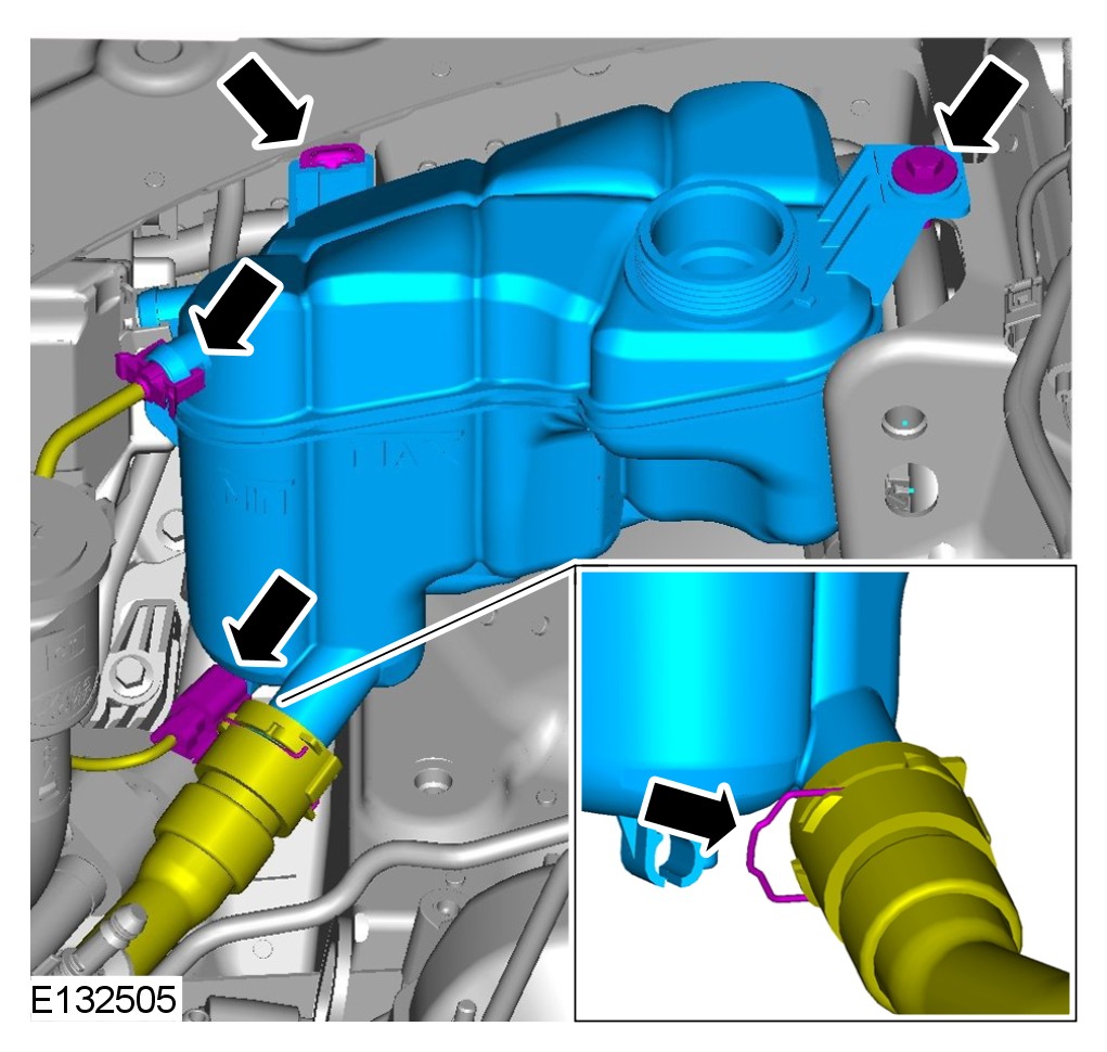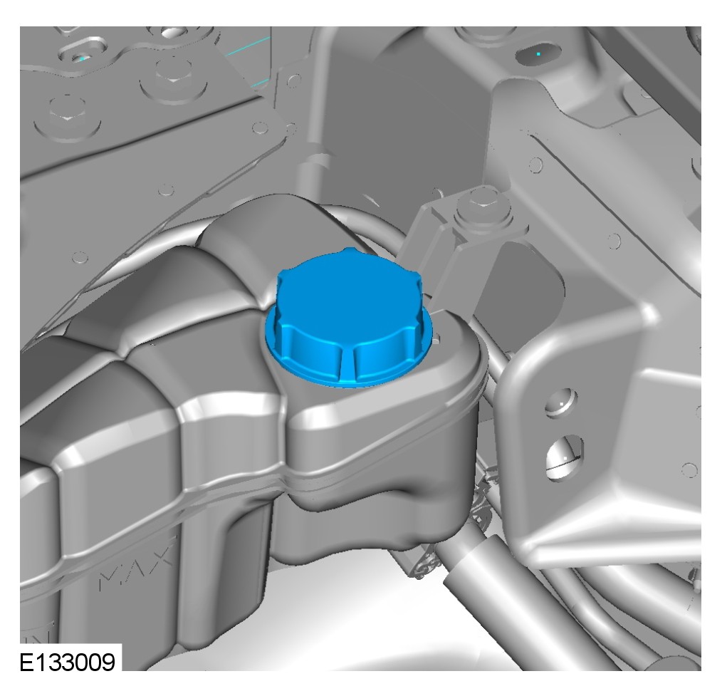 CAUTION: Correct installation of the Coolant expansion tank cap can be obtained by tightening the cap until an audible click is heard.