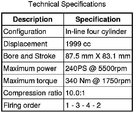 The 2.0L Gasoline Turbocharged Direct Injection (GTDi) engine is an in-line, double overhead camshaft, 4 cylinder engine, which is transverse mounted in the engine compartment. The engine weight is kept to a minimum by using aluminum for the cylinder block, cylinder head and oil pan.