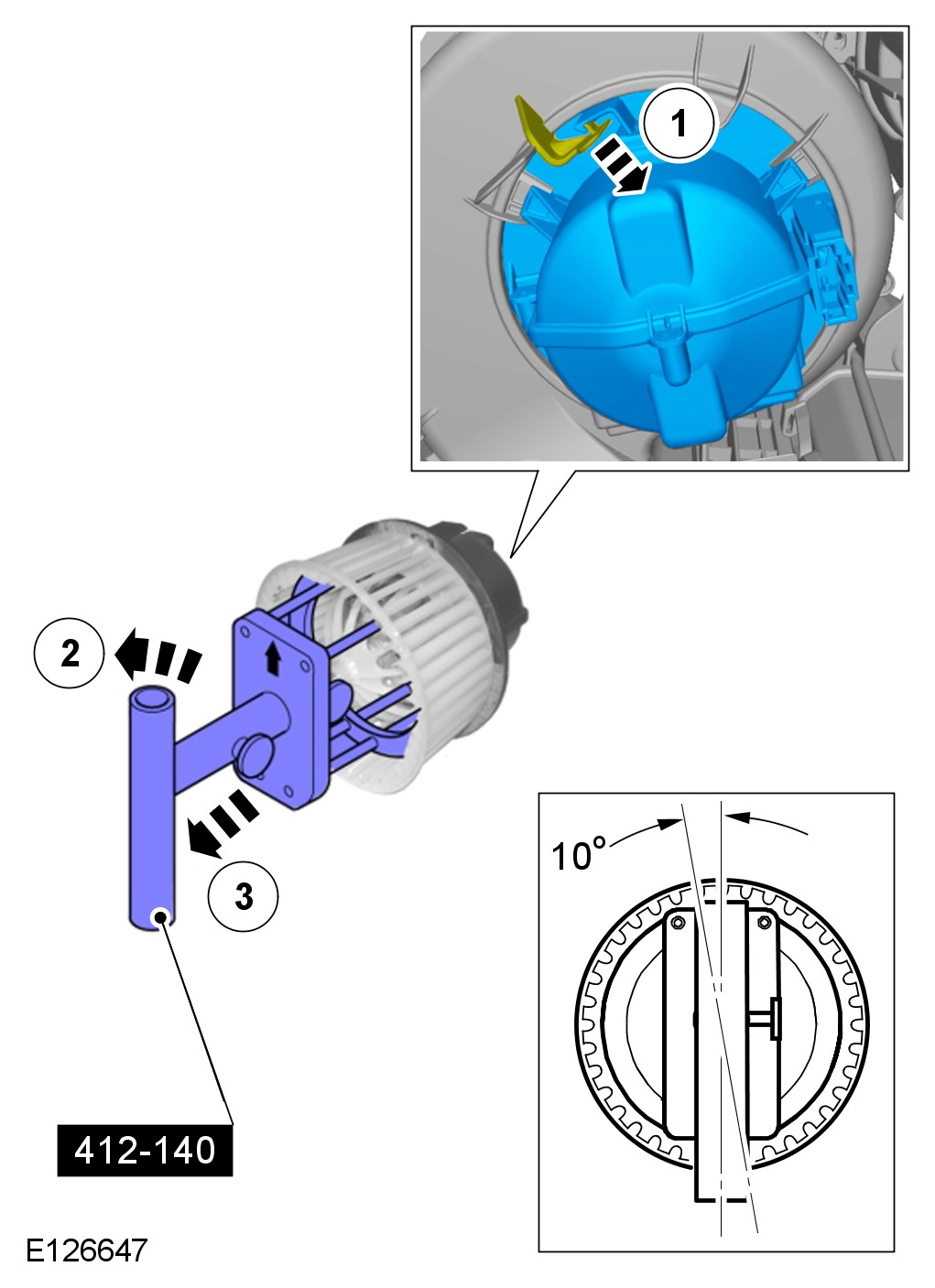 The recirculation blend door must be closed in order for the removal of the recirculation blend door housing.