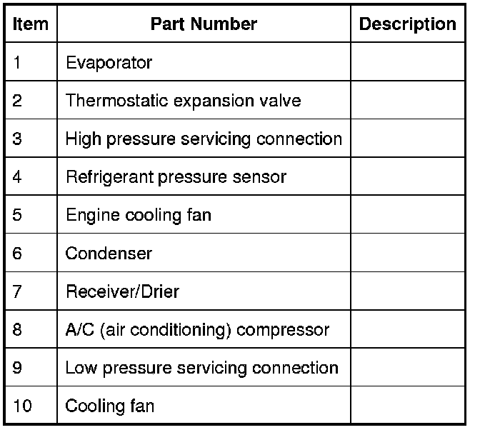The high pressure/temperature regime is from the compressor, through the condenser and receiver drier assembly to the thermostatic expansion valve. The refrigerant increases in pressure and temperature as it passes through the compressor, then releases heat and changes state from a vapor to a liquid in the condenser.