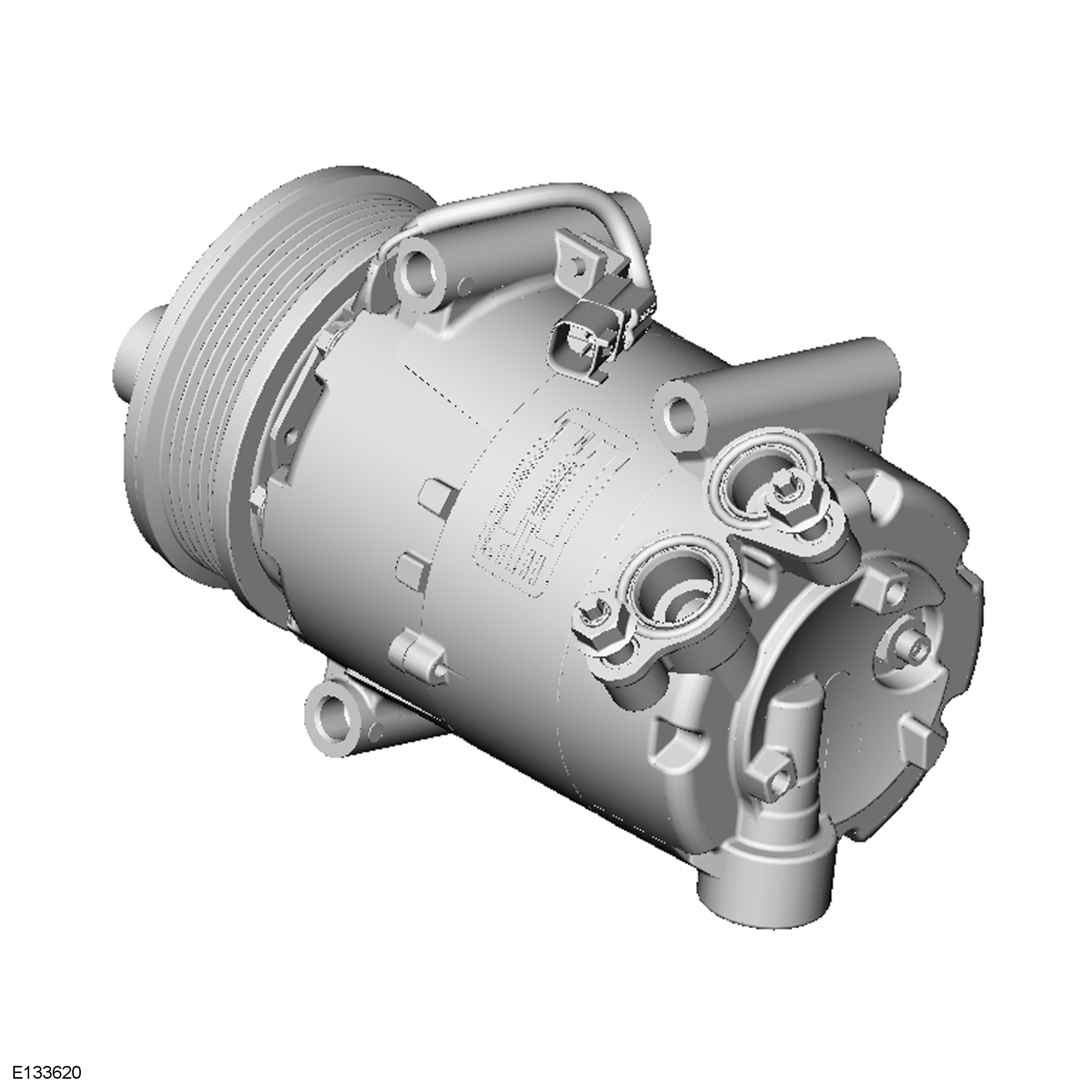 The A/C (air conditioning) compressor is driven by the engine accessory drive belt and circulates refrigerant around the system by compressing low pressure, low temperature vapor from the evaporator and discharging the resultant high pressure, high temperature vapor to the condenser.