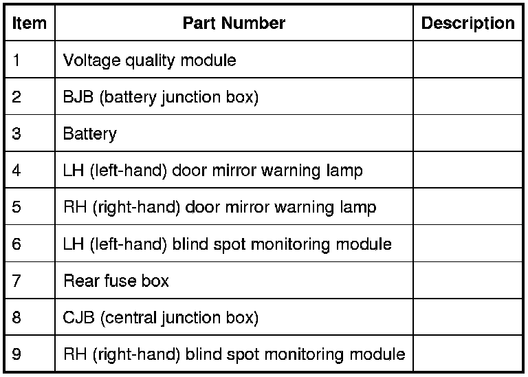 When any faults are present in the system DTC (diagnostic trouble code)'s are stored in both blind spot monitoring modules appropriate to each module. Replacement of modules requires the right hand module to be configured using the Land Rover approved diagnostic equipment. Due to the fact that all modules are supplied as left hand modules, the replacement left hand modules do not require configuring.