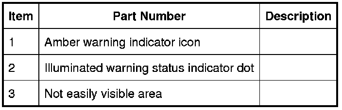 The amber warning indicator dot (2) remains illuminated until forward vehicle speed exceeds 16km/h (10mph).