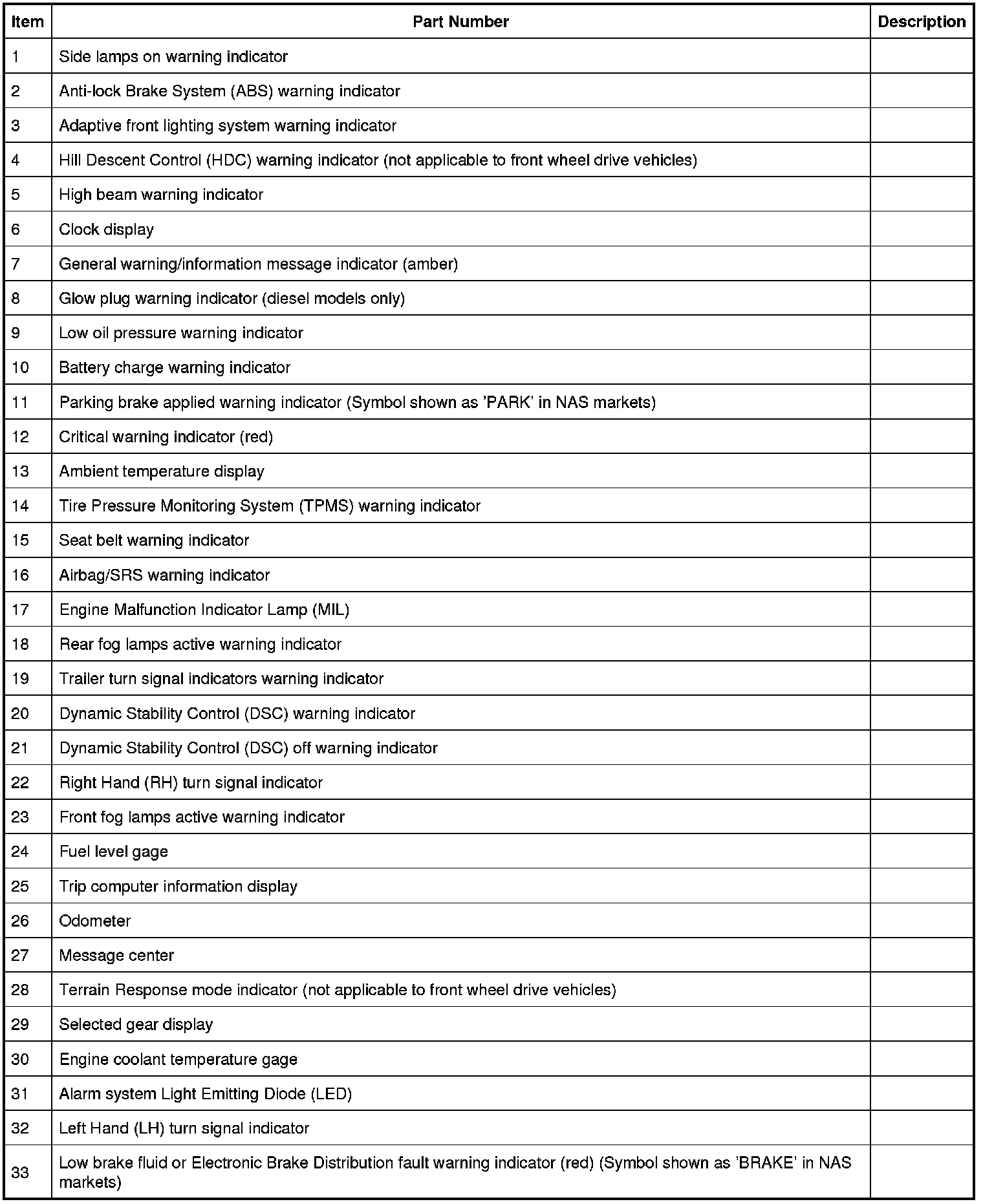The warning indicators are located in various positions in the instrument cluster. The warning indicators can be split into two groups; self controlled and externally controlled.