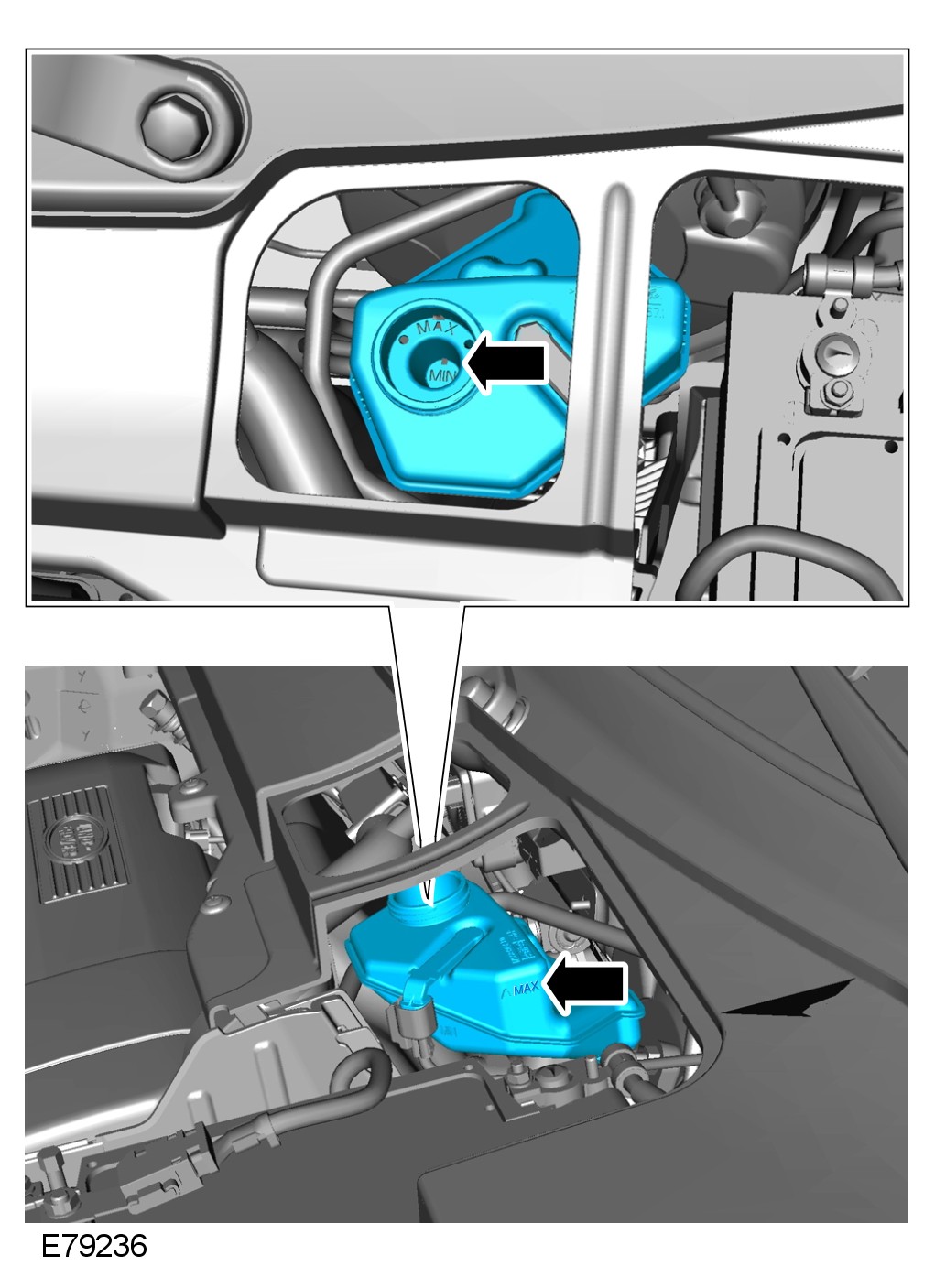 CAUTION: Brake fluid will damage paint finished surfaces. If spilled, immediately remove the fluid and clean the area with water.