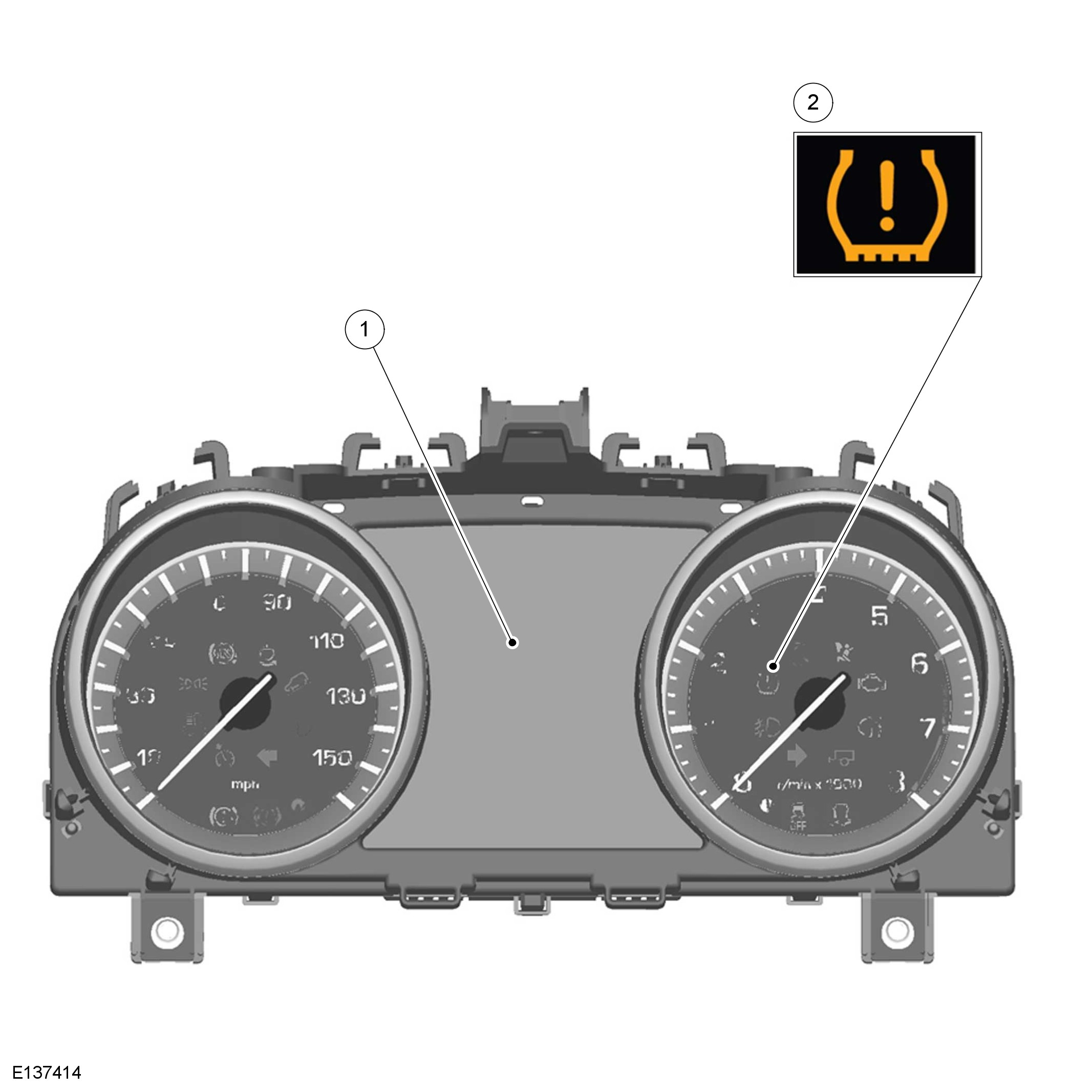 The warning indicator and message center are driven by CAN (controller area network) messages from the CJB (central junction box). The warning indicator is illuminated by the cluster software for 3 seconds when the vehicle is in power mode 6 for a bulb check.