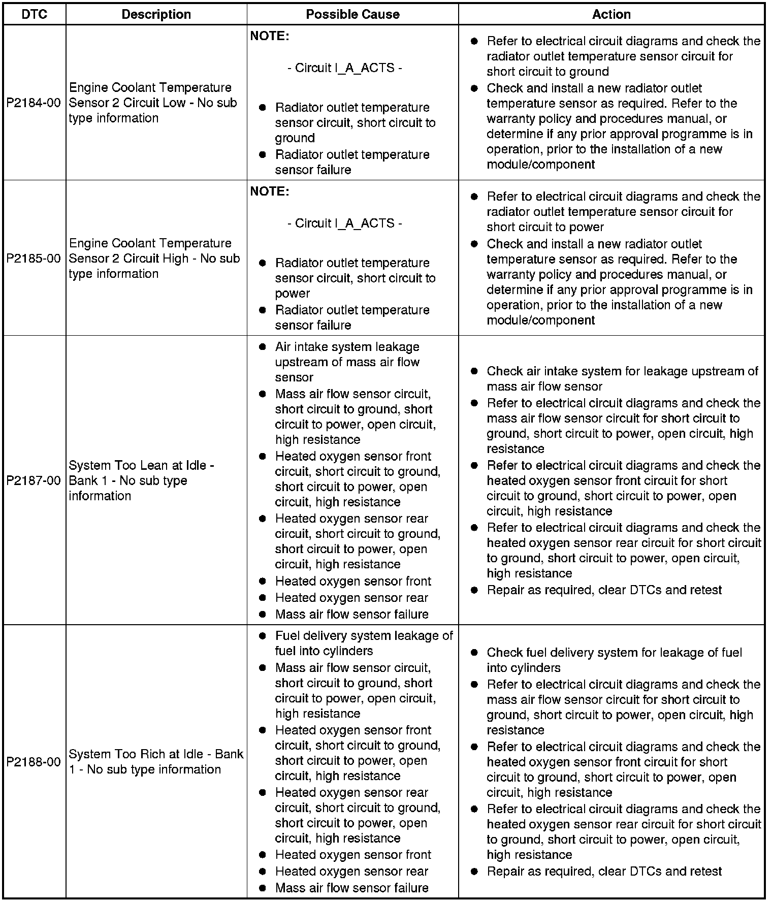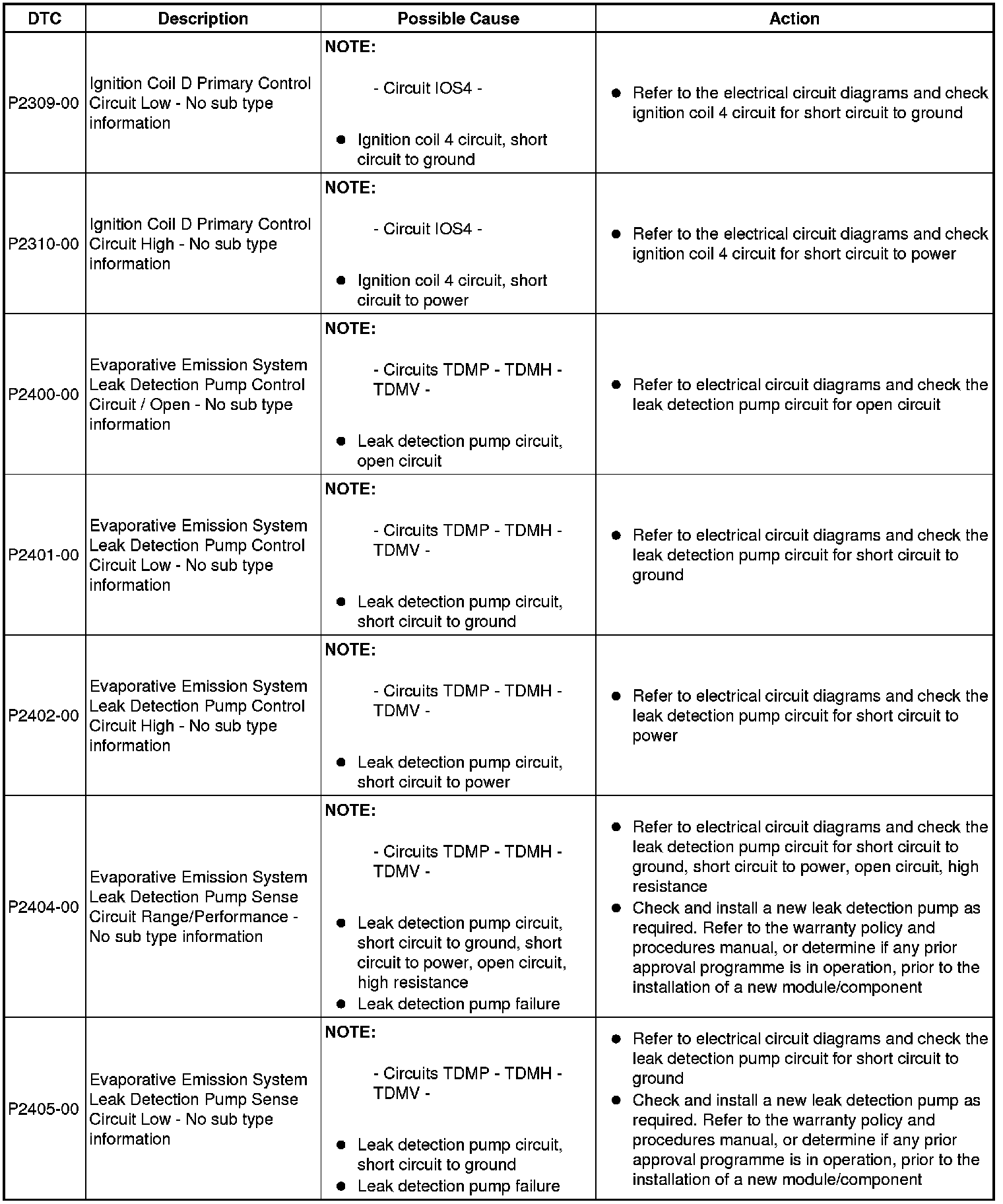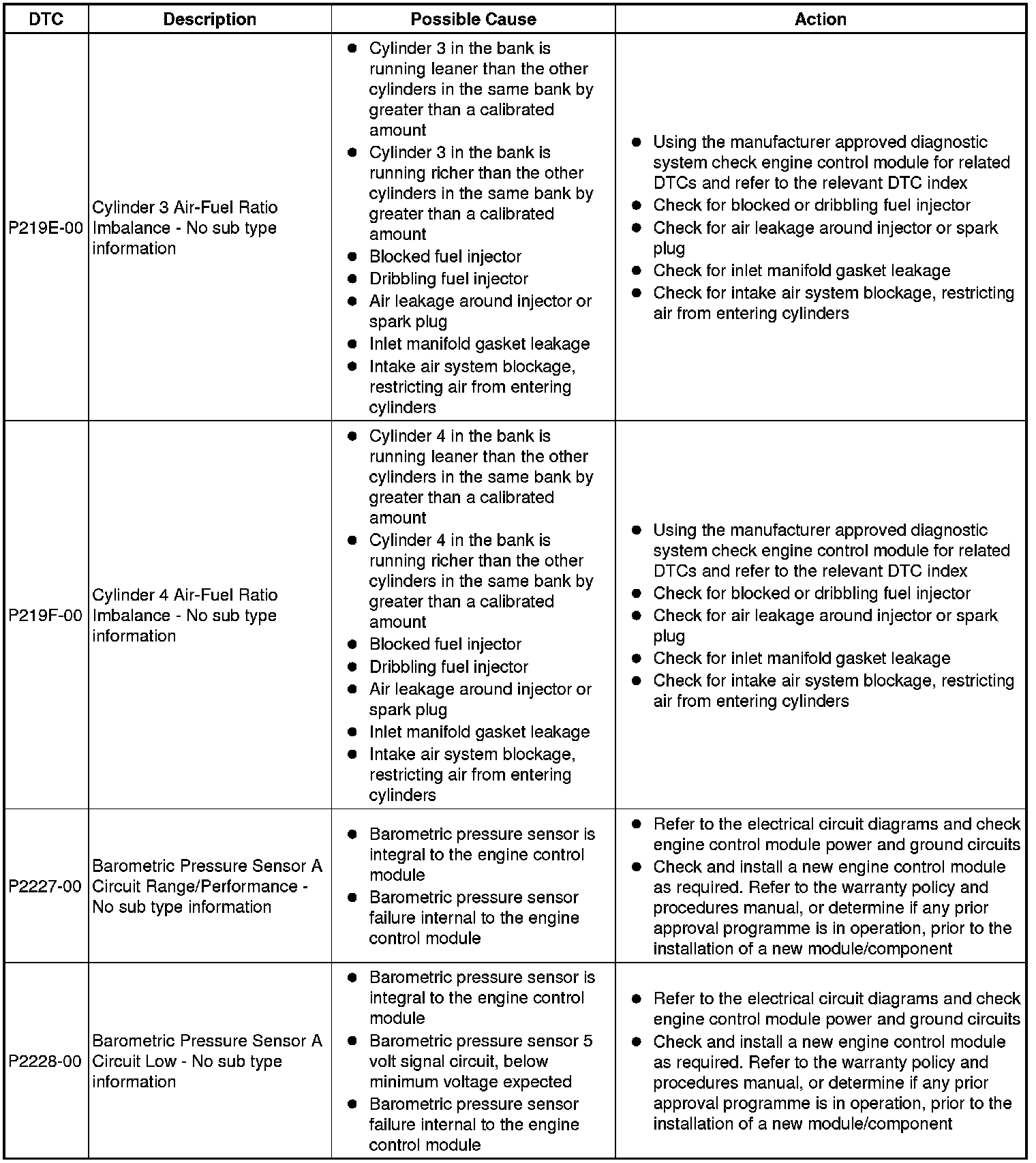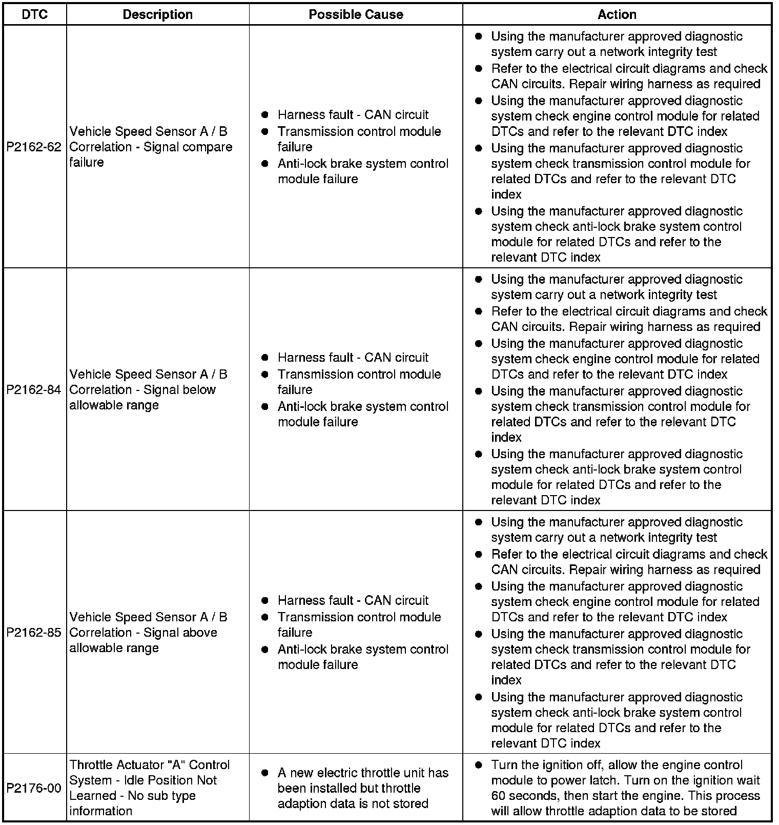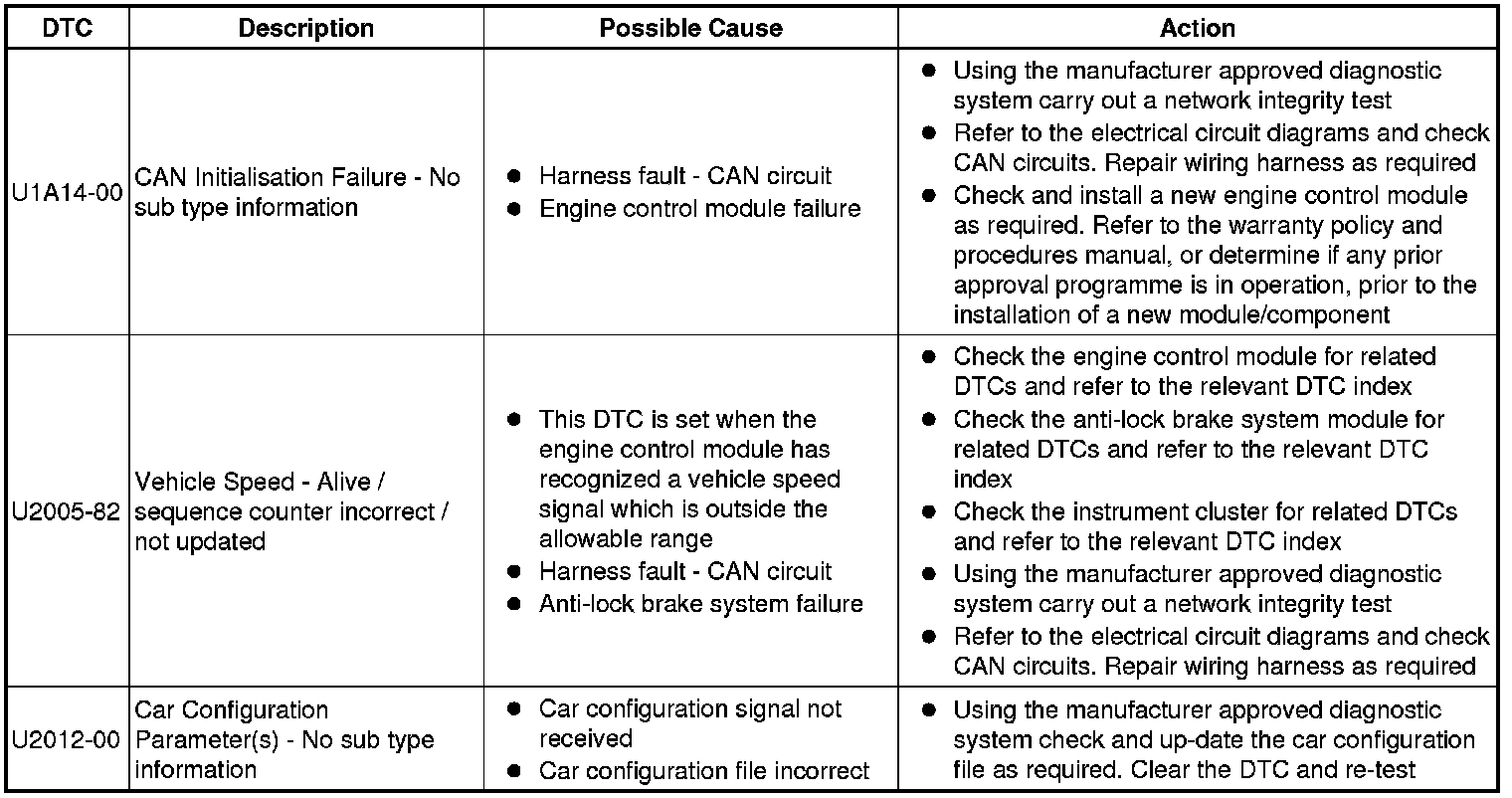 Diagnostic Trouble Code (DTC) Index [GTDi 2.0L Petrol, DTC: Engine Control Module (PCM), P2162-62 to U2012-00