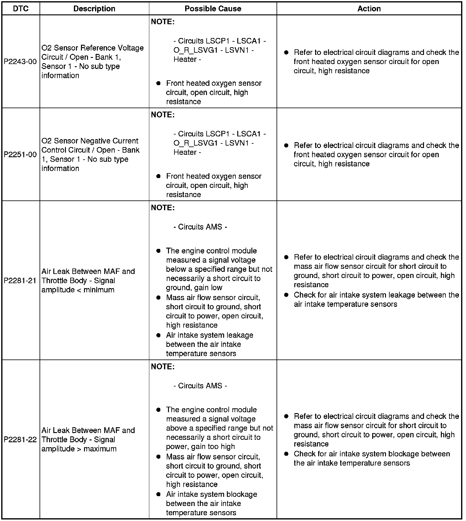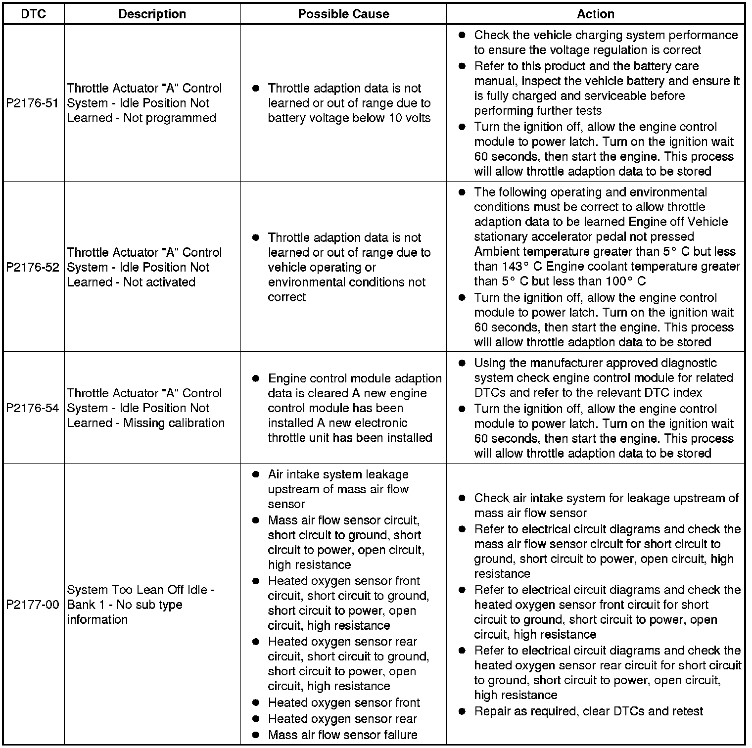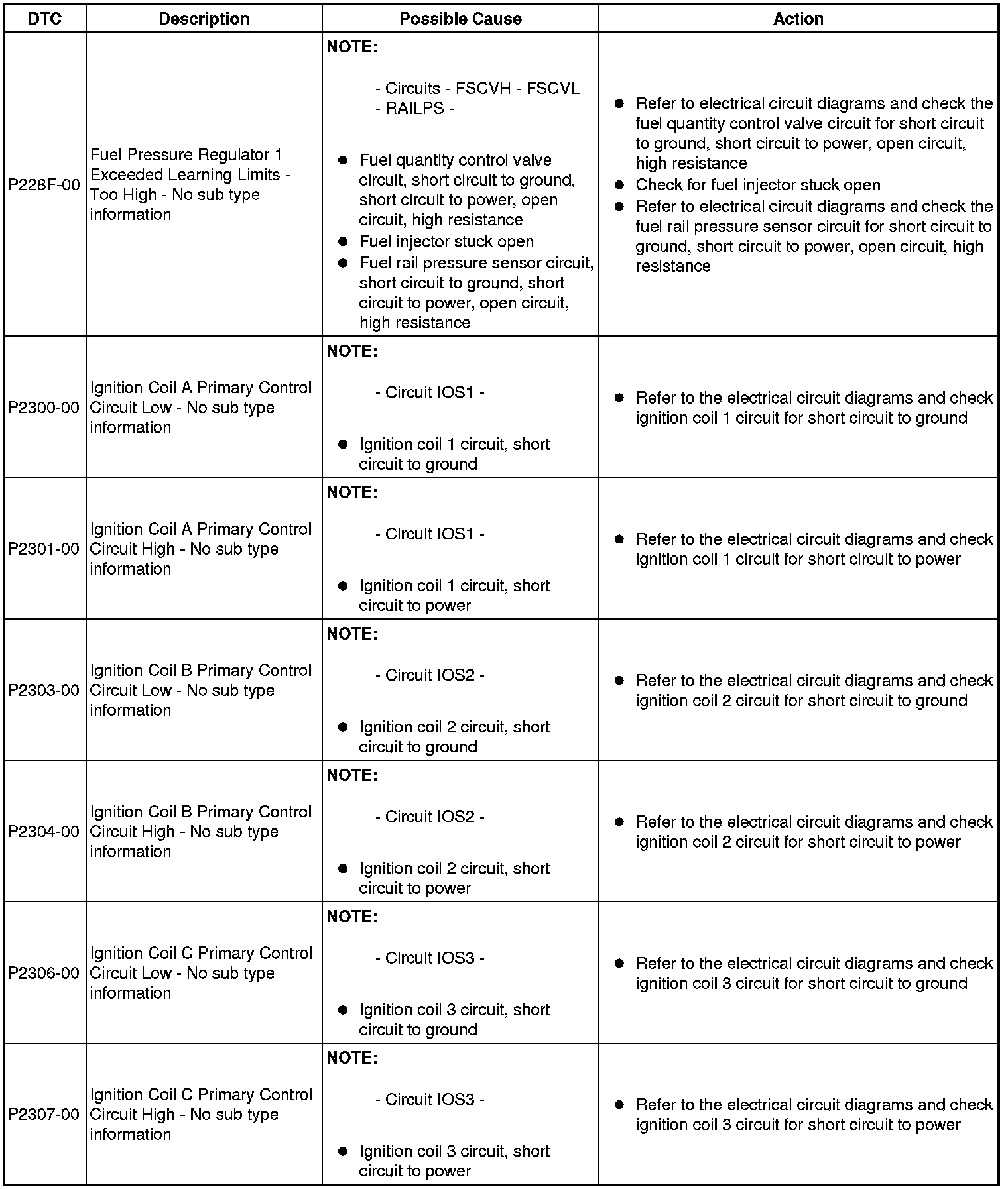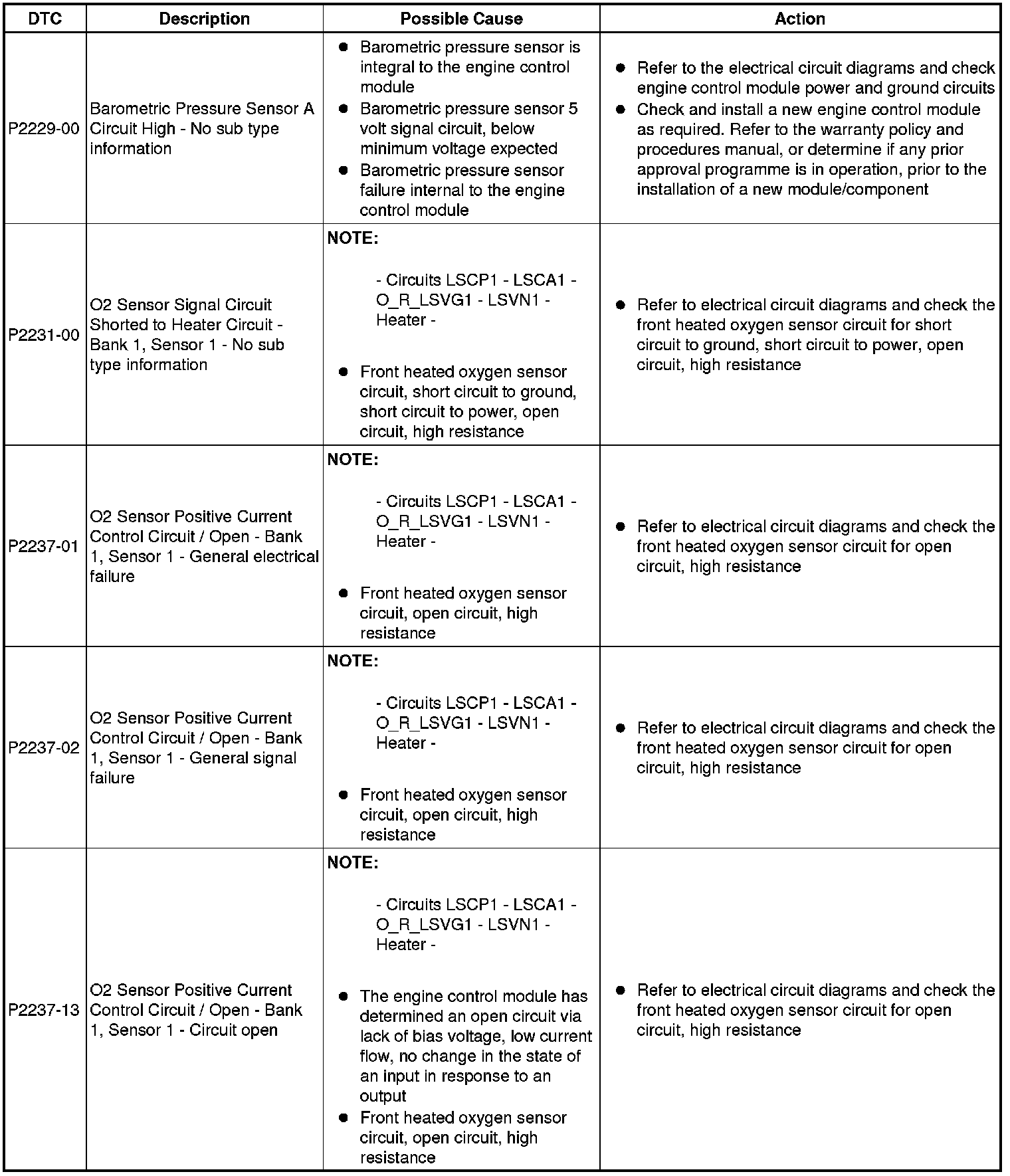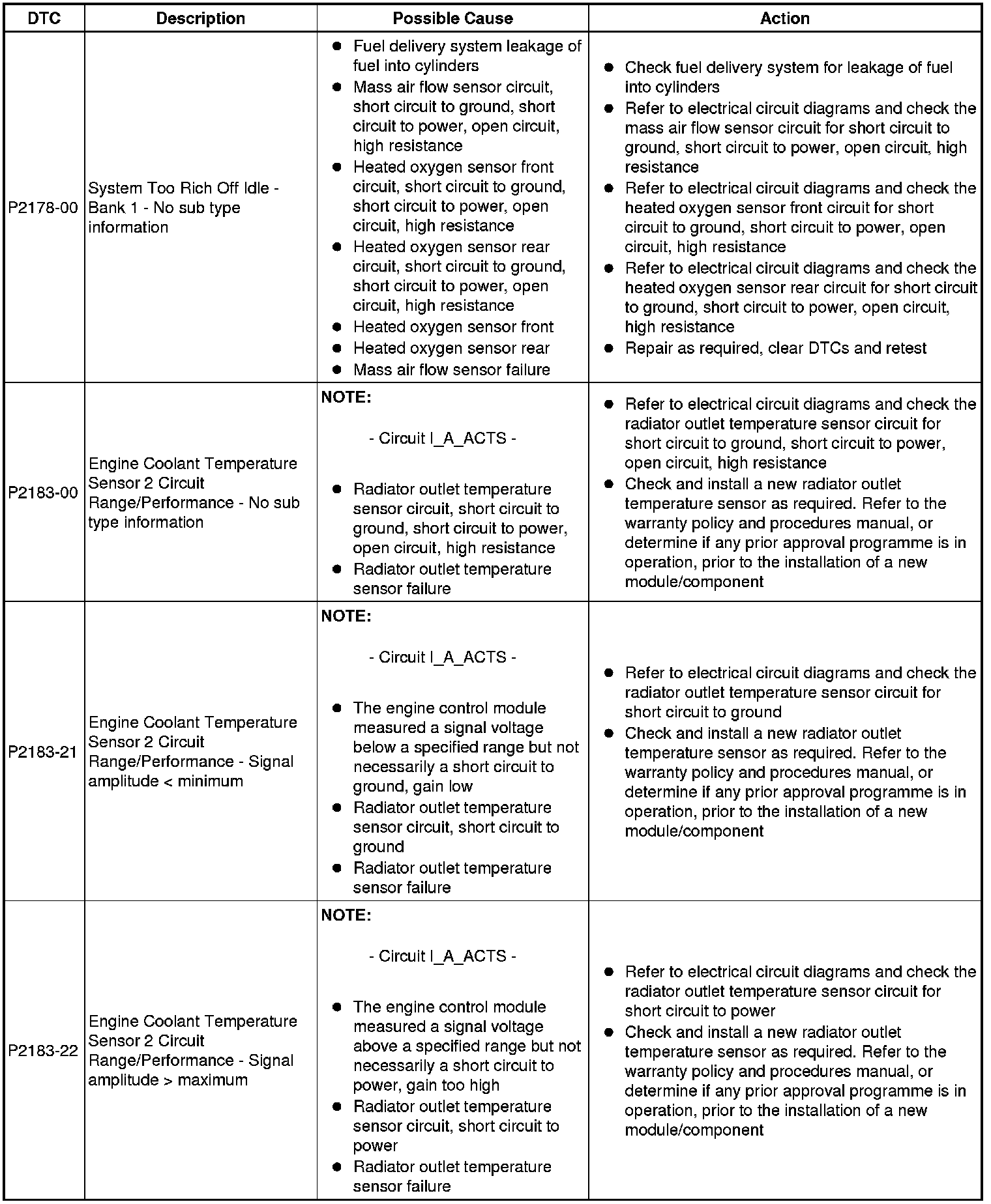 Diagnostic Trouble Code (DTC) Index [GTDi 2.0L Petrol, DTC: Engine Control Module (PCM), P2162-62 to U2012-00