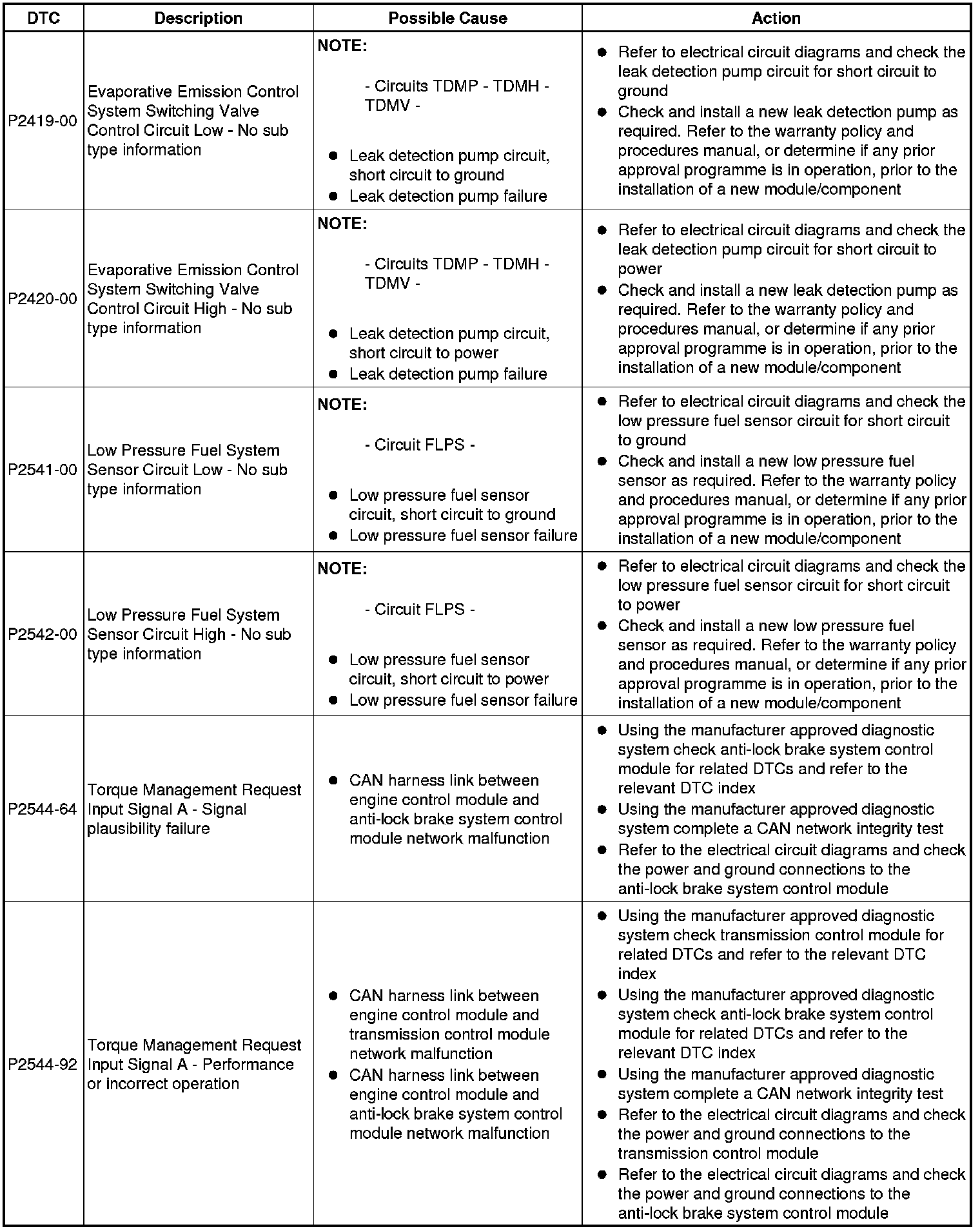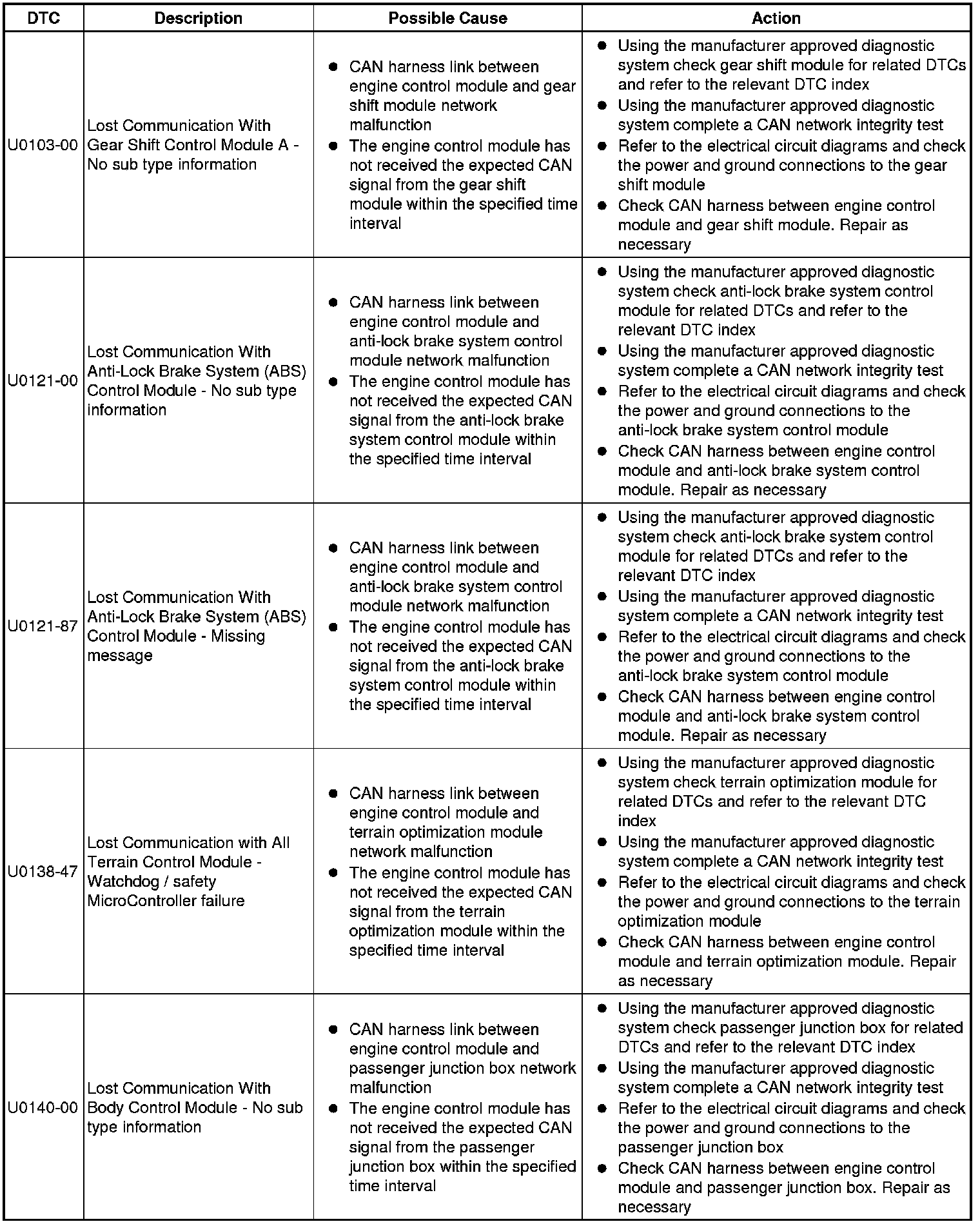 Generic scan tools may not read the codes listed, or may read only five digit codes. Match the five digits from the scan tool to the first five digits of the seven digit code listed to identify the fault (the last two digits give additional information read by the manufacturer-approved diagnostic system).