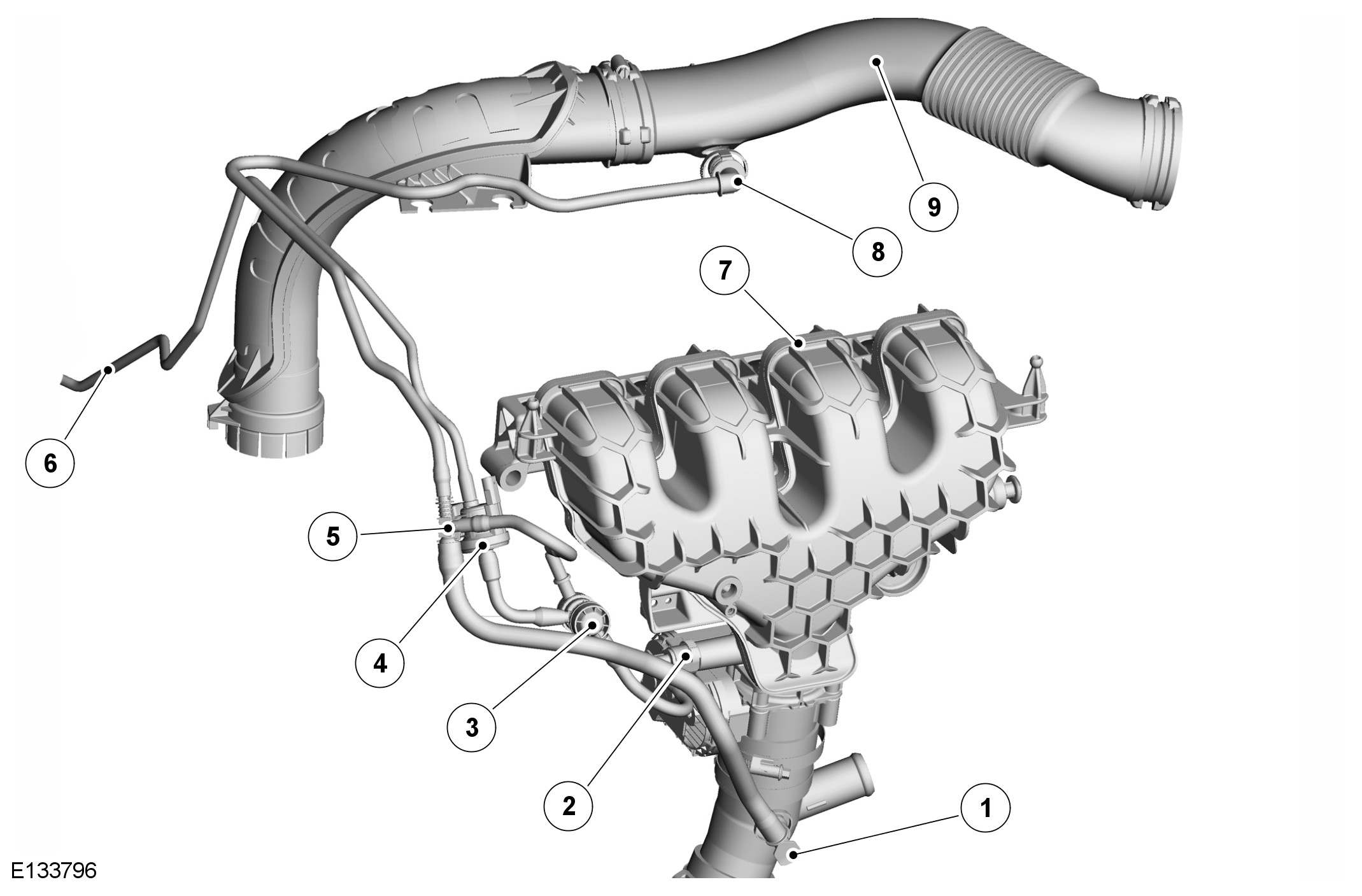 Under high load, high turbocharger boost conditions, the pressure in the intake manifold will exceed the purge system pressure, preventing purge gases being drawn into the intake manifold. Under these conditions, purge flow is diverted via the double check valve to the venturi. The pressure differential between the clean air purge 2 hose connection port on the connector port below the electric throttle and purge 2 hose connection on the clean air low pressure duct generates a bypass flow through the venturi (under all conditions) and hence a depression within the venturi, enabling purge gasses to be drawn in and passed through the turbocharger compressor to the engine via the clean air low pressure duct.