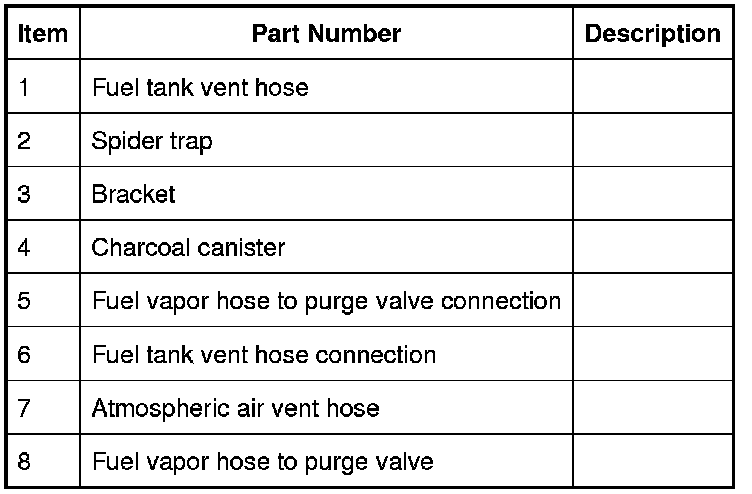 The purge system does not include a pressure test point. Pressure testing of the system is performed by disconnection of the purge valve hose and connecting special tools to allow the purge system to be pressure tested. The test will confirm the integrity of the purge hose and connections.