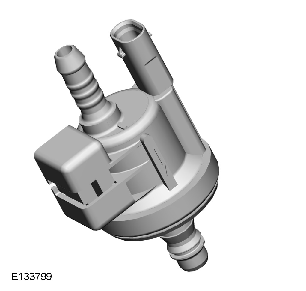 The vapor purge hose from the charcoal canister connects into the upper connection on the valve. The low connection provides for the attachment of the vapor outlet hose to the double check valve. An electrical connector on the top of the valve connects with the vehicle engine wiring harness.