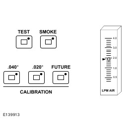 - 2. Determine if the vehicle's EVAP system you are testing is governed by a.020” (0.5 mm) or.040” (1 mm) acceptable leak standard. Press the appropriate calibration standard on the tester's control panel and observe the position of the flow meter ball. > This function automatically turns off in 10 seconds