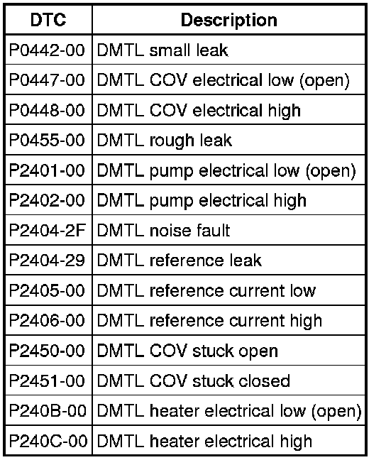 This guide covers DTCs that relate to evaporative leak monitoring, as listed in the table below