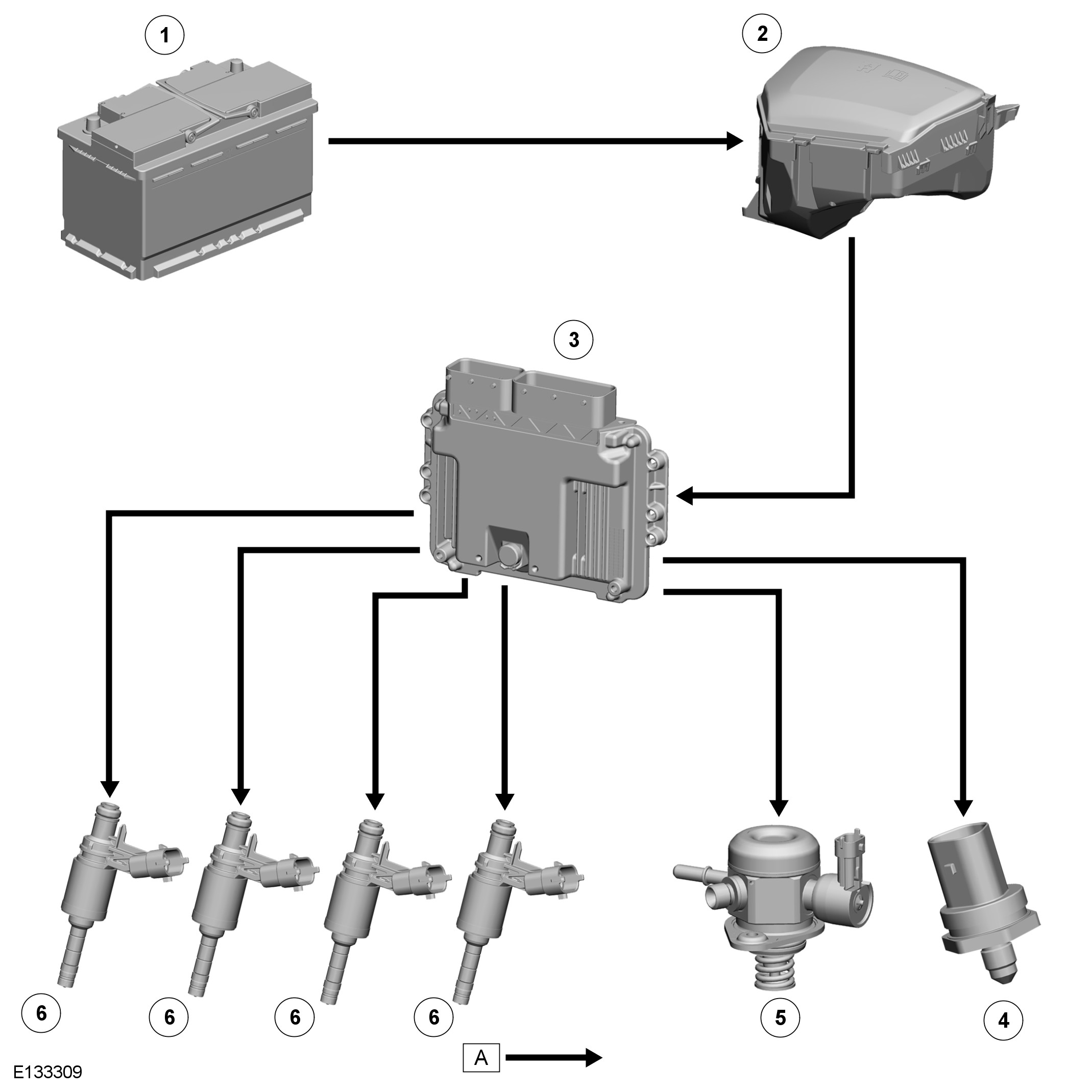 The ECM (engine control module) controls the output from the HP fuel pump to deliver the required volume of fuel at pressures up to 150 bar (2175 lbf/in2).
