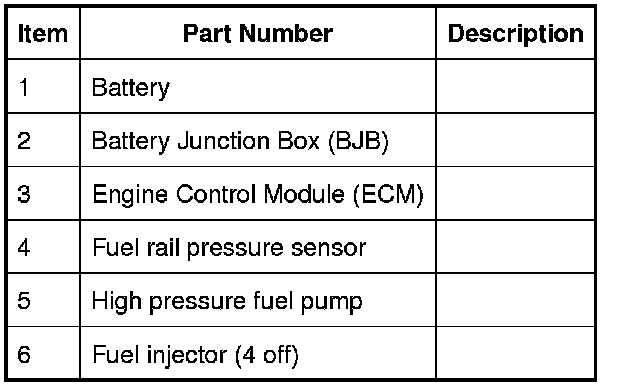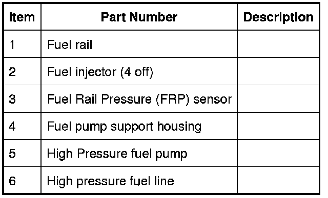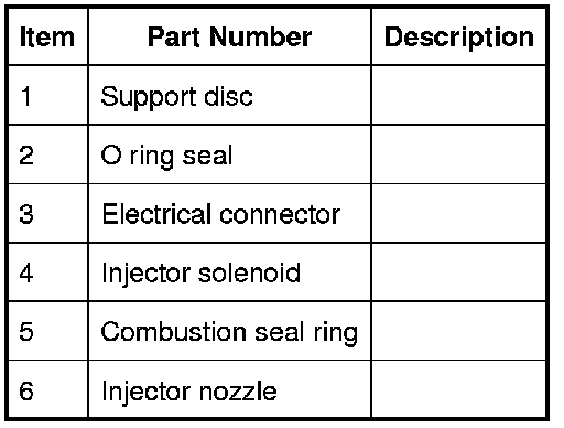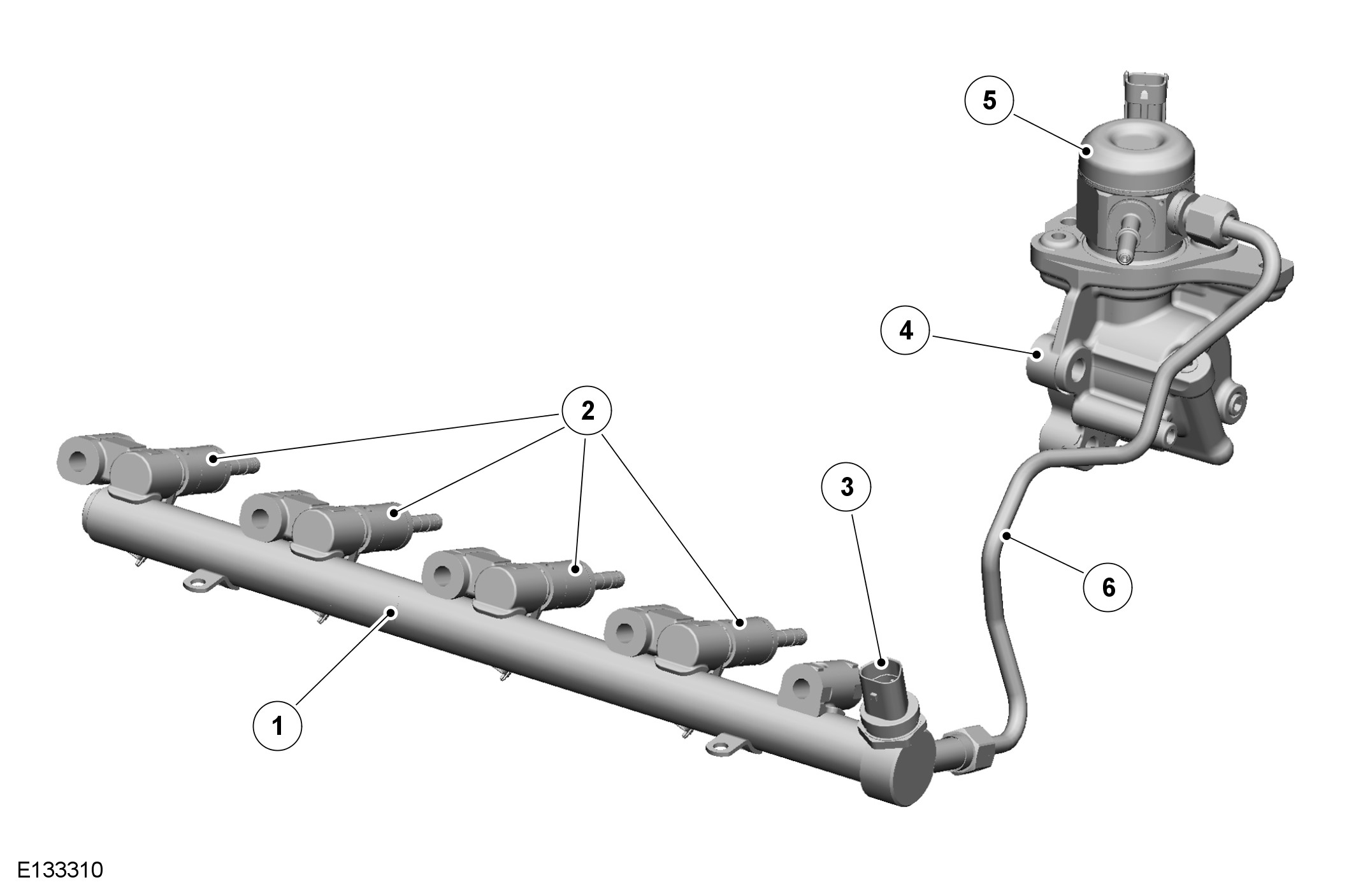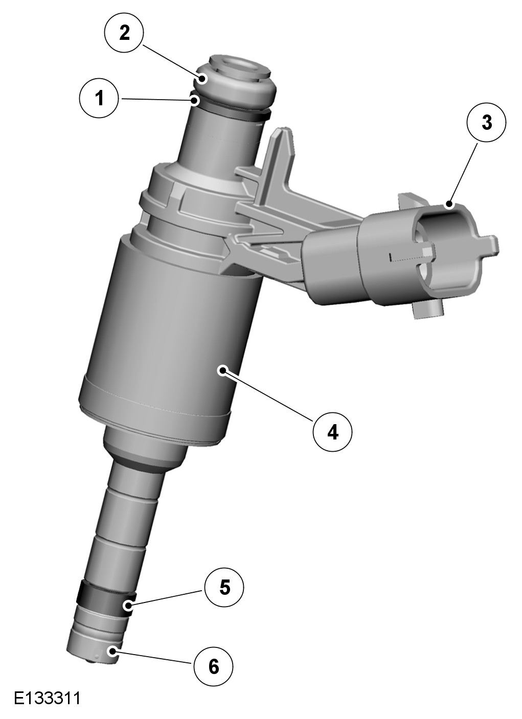 Four HP fuel injectors are used. Each injector is side mounted in a port in the cylinder head. The fuel injectors are a push fit in the fuel rails and the cylinder heads. On each fuel injector, a rubber O-ring and support disc seals the head of the fuel injector in the fuel rail. A Teflon combustion seal ring seals the nozzle of the fuel injector in the cylinder head. The fuel rail provides positive location of each injector.